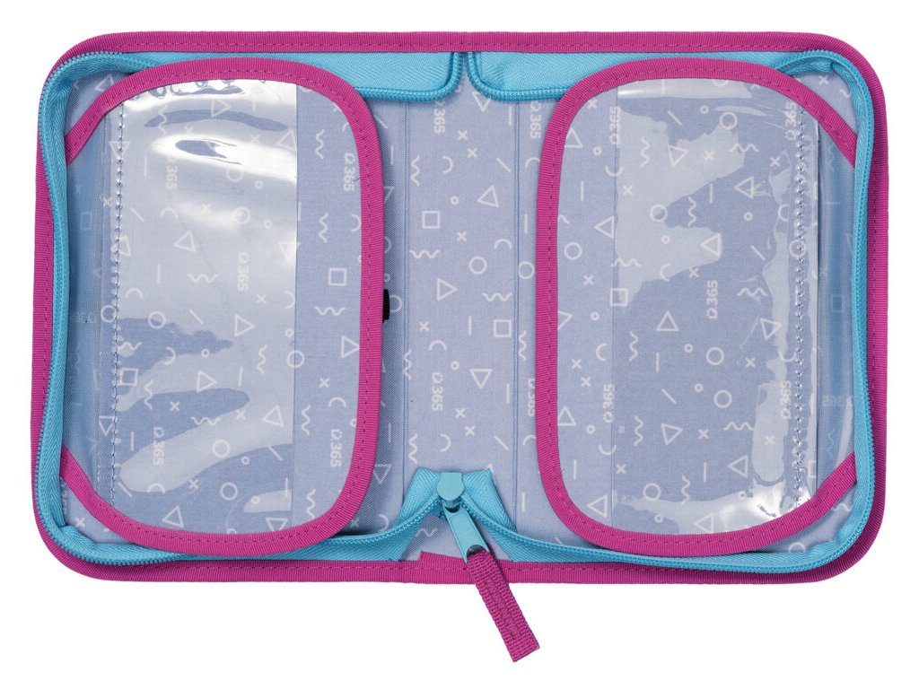 - Popruh na přední straně pro uchycení například mikiny cestou domů ze školy.