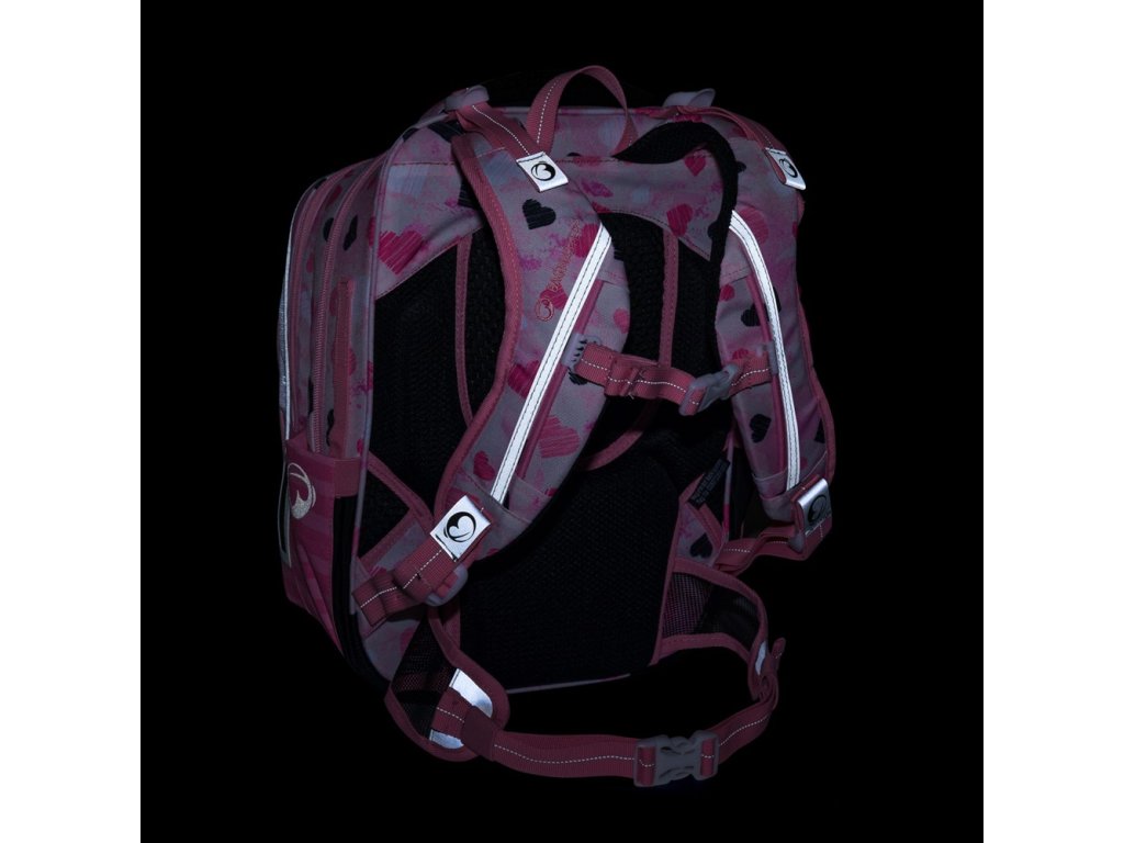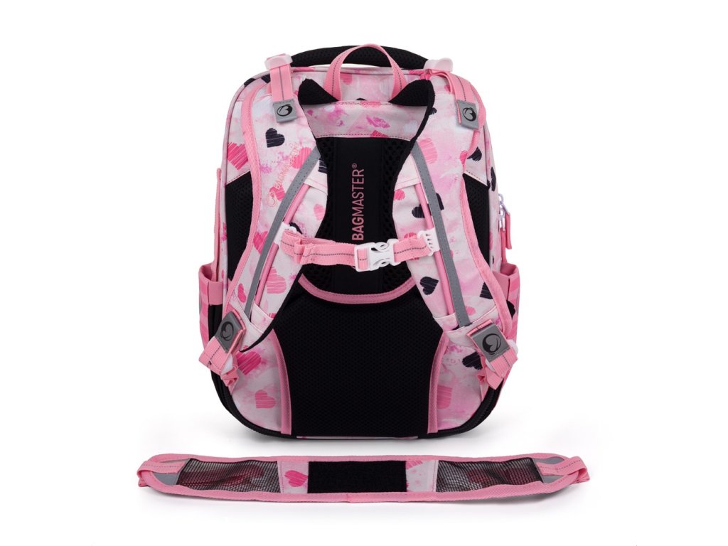 - Ramenní popruhy i zádový systém jsou měkce polstrované. Popruhy se nastavují pomocí horních a dolních plastových spon. Je třeba upravovat délku podle toho, jak školačka roste. Konce popruhů jsou magnetické. Aby neblincaly, jednoduše je magnetem připnete nad plastovou sponu.