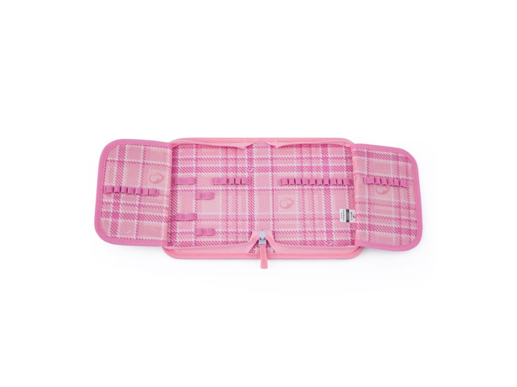 - Na černou přezku v přední kapse můžete školačce připnout síťovaný sáček. Třeba na peníze nebo sluchátka. Do kapsičky na zip se vejde power banka. Nabíjecí kabel stačí otevřeným rožkem protáhnout k telefonu umístěnému v organizéru.