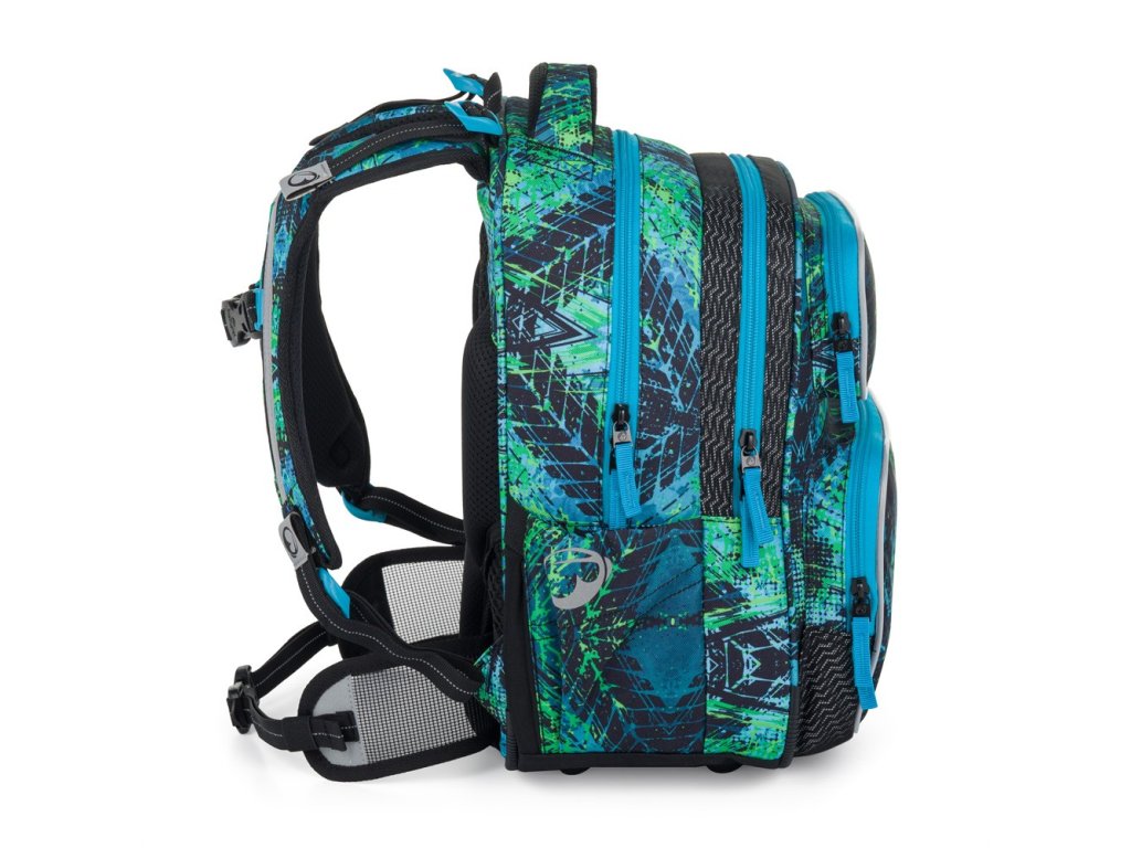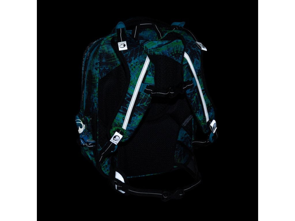 - Díky zapnutým přezkám hrudního a bederního pásu Ti batoh nebude blincat na zádech. Můžeš tak pohodlně jezdit do školy na kole nebo na koloběžce.