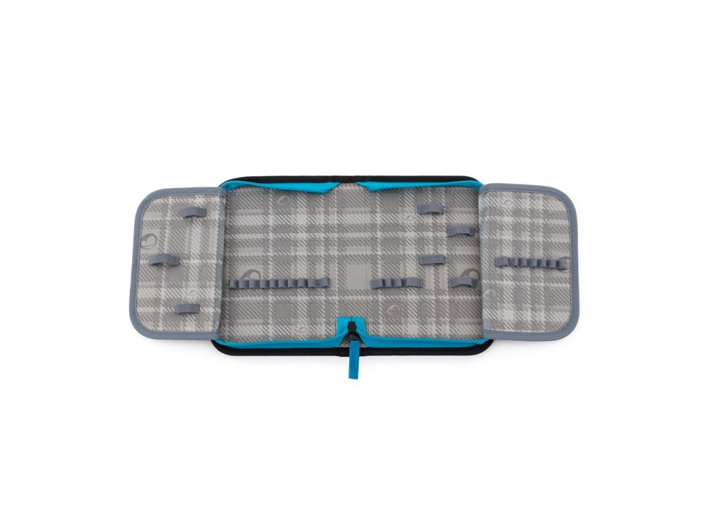 - V lehkém penálu se nachází spousta pružných úchytů na všechny psací potřeby.
