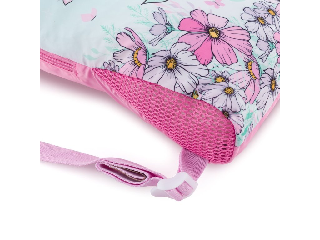 - Ve spodní části sáčku je síťované odvětrání. To se hodí hlavně když školačka do vaku hodí zpocený úbor z tělocviku nebo gymnastiky.