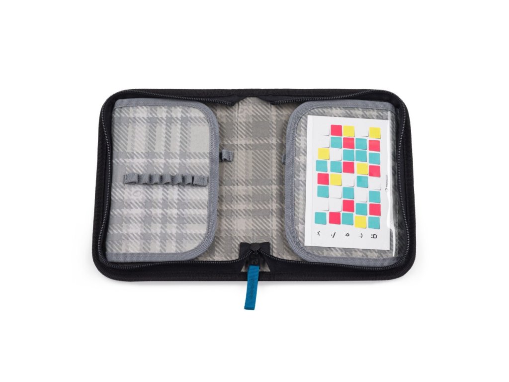Dvouchlopňový školní penál s 39 elastickými úchyty na psací potřeby, průhlednou kapsou na rozvrh a praktickým organizérem.