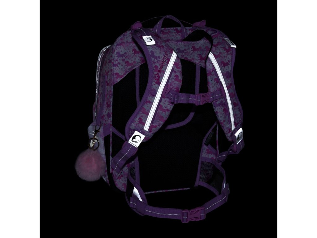 - Batoh má spoustu výrazných reflexních prvků, díky kterým bude malá školačka v bezpečí (ze přední strany, po stranách i zezadu na ramenních popruzích). Přesvědčit se můžete tak, že batoh vyfotíte s bleskem.