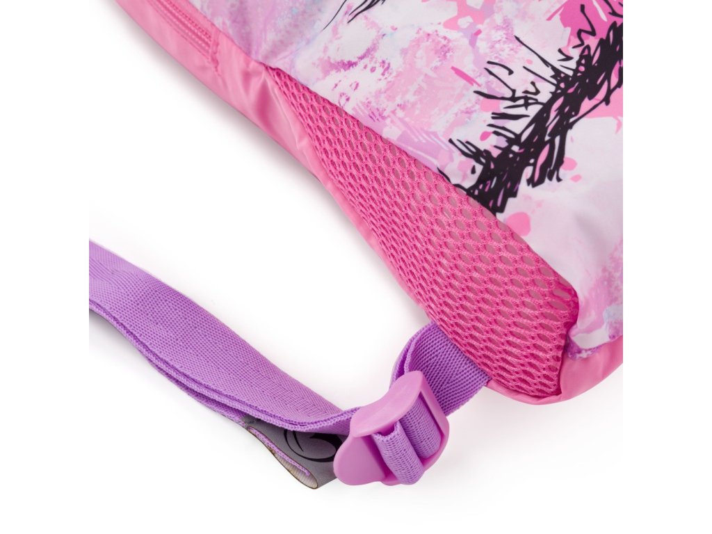 - Ve spodní části sáčku je síťované odvětrání. To se hodí hlavně když školačka do vaku hodí zpocený úbor z těláku nebo baletu.