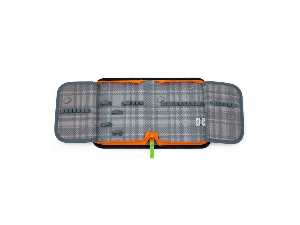 - V přední kapse je praktický organizér na mobil, tužky, sluchátka a peněženku.