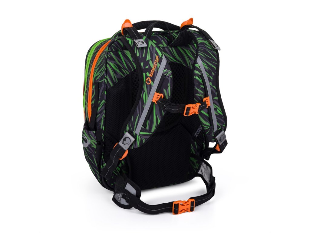 - Ramenní popruhy i zádový systém jsou měkce polstrované. Popruhy se nastavují pomocí horních a dolních plastových spon. Je třeba upravovat délku podle toho, jak školák roste. Konce popruhů jsou magnetické. Aby neblincaly, jednoduše je magnetem připnete nad plastovou sponu.