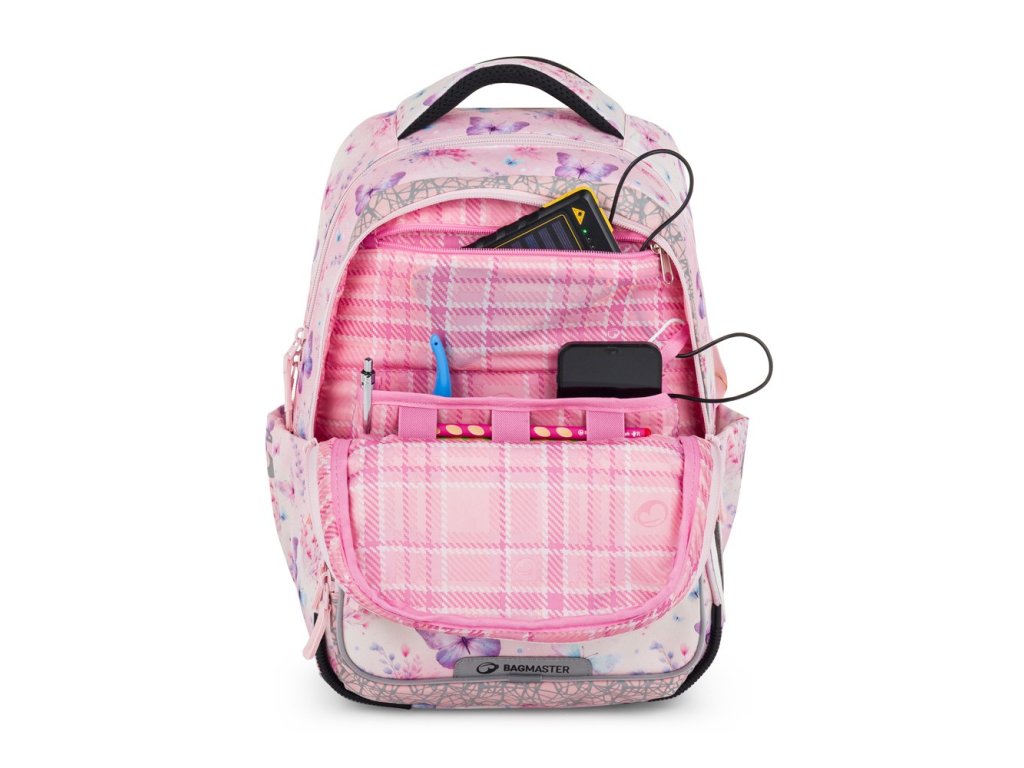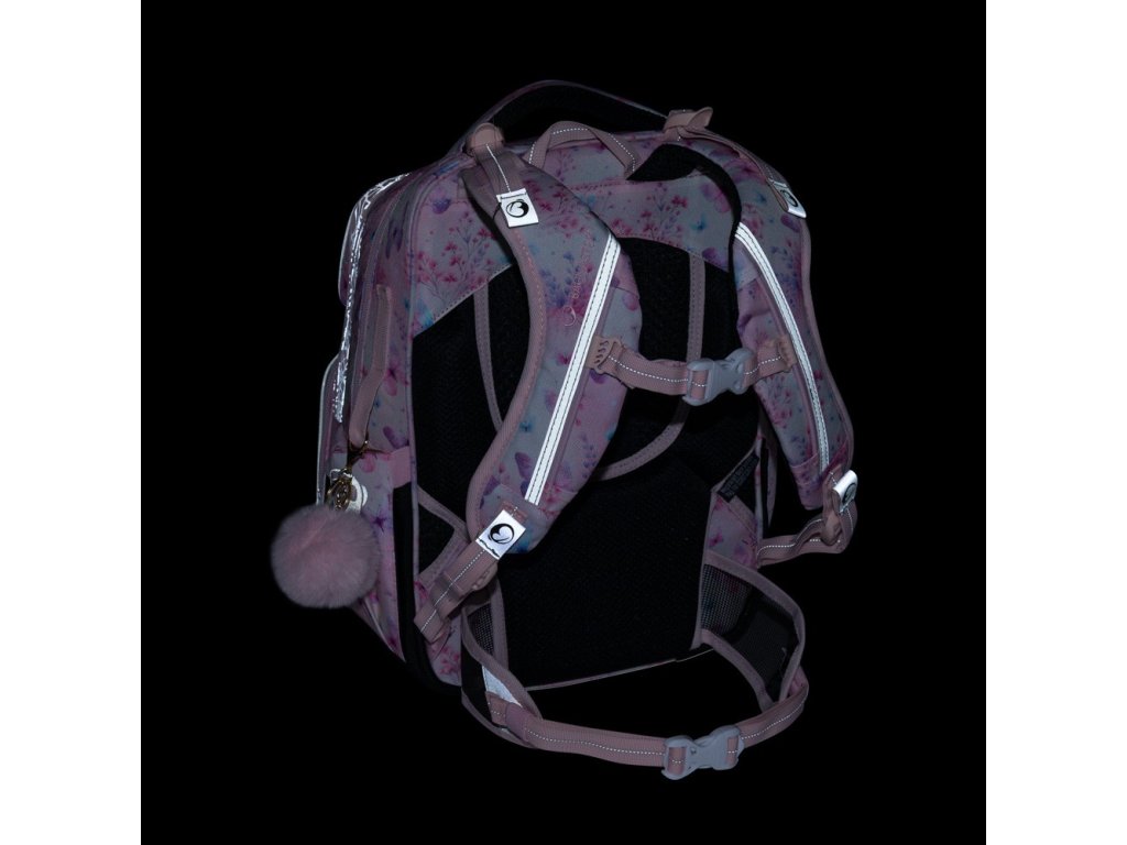- Batoh má spoustu výrazných reflexních prvků, díky kterým bude malá školačka v bezpečí (ze přední strany, po stranách i zezadu na ramenních popruzích). Přesvědčit se můžete tak, že batoh vyfotíte s bleskem.