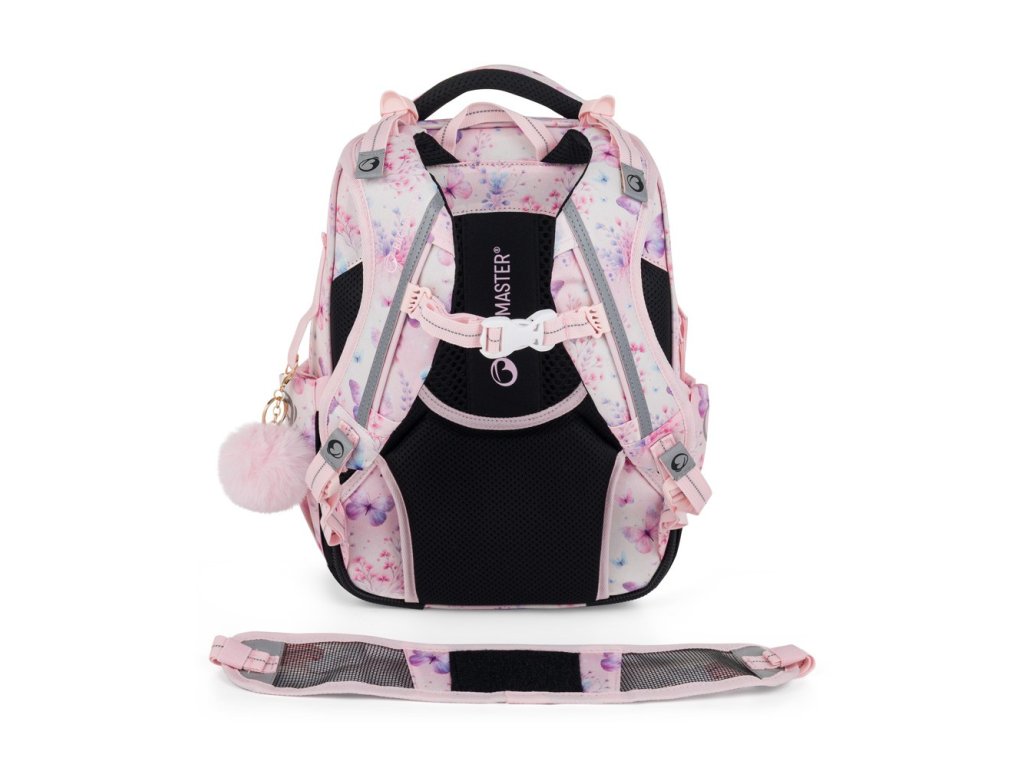 - Ramenní popruhy i zádový systém jsou měkce polstrované. Popruhy se nastavují pomocí horních a dolních plastových spon. Je třeba upravovat délku podle toho, jak školačka roste. Konce popruhů jsou magnetické. Aby neblincaly, jednoduše je magnetem připnete nad plastovou sponu.
