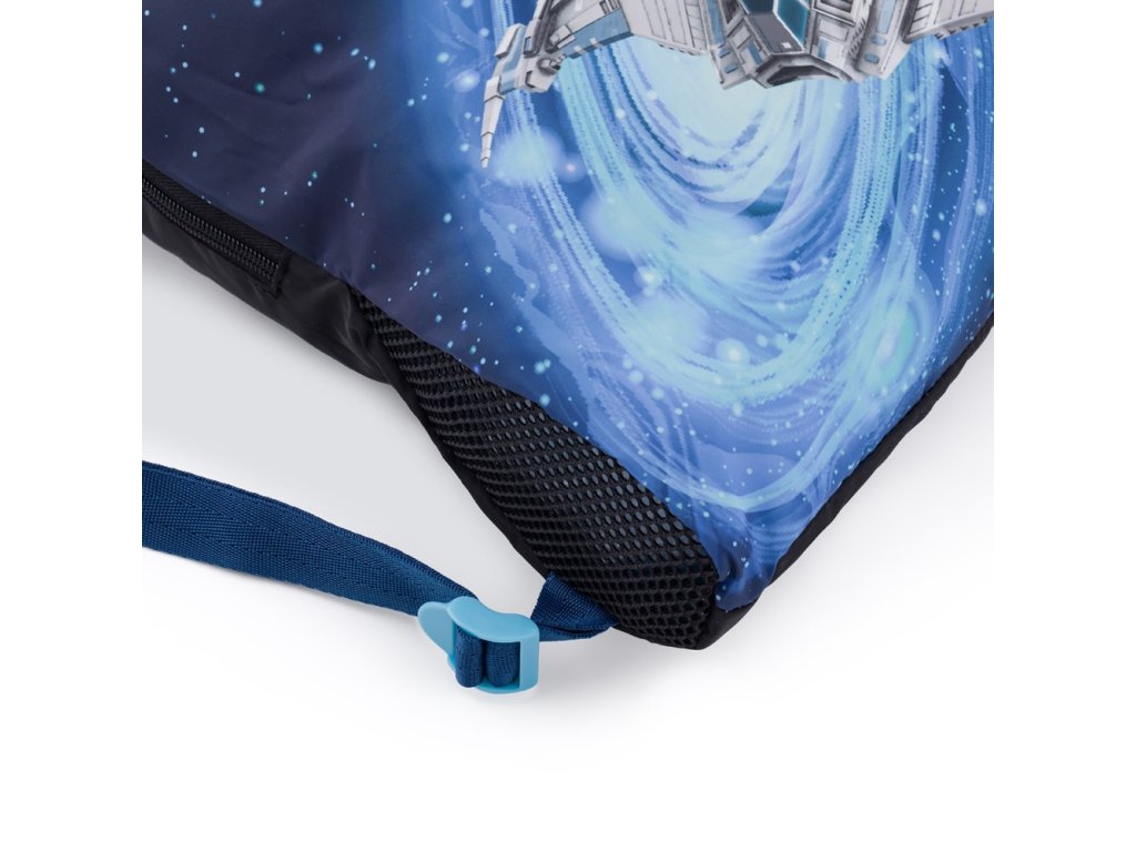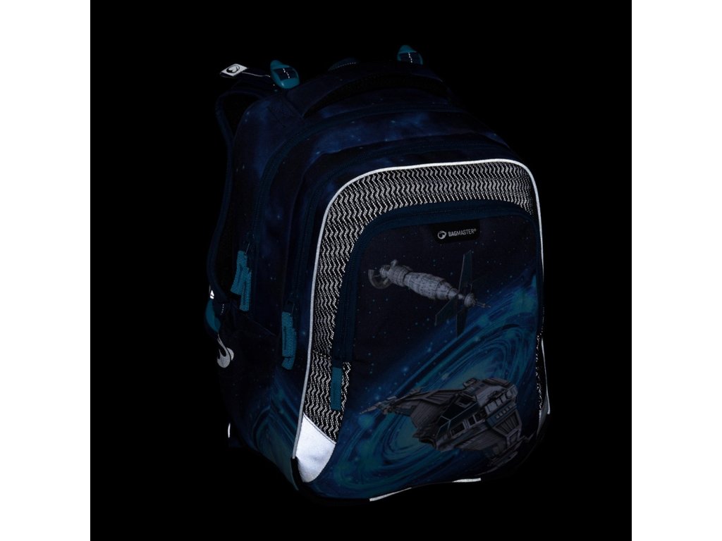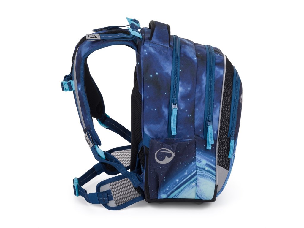 Tříkomorový školní batoh pro malé astronauty od 1. do 3. třídy. Ergonomicky tvarovaná záda s hrudním a bederním pásem zajistí, že malí průzkumníci budou cestovat pohodlně a bezpečně. A to i ve tmě, díky reflexním prvkům. Součástí setu je sladěný sáček, penál, svačinový box s lahví na pití.
