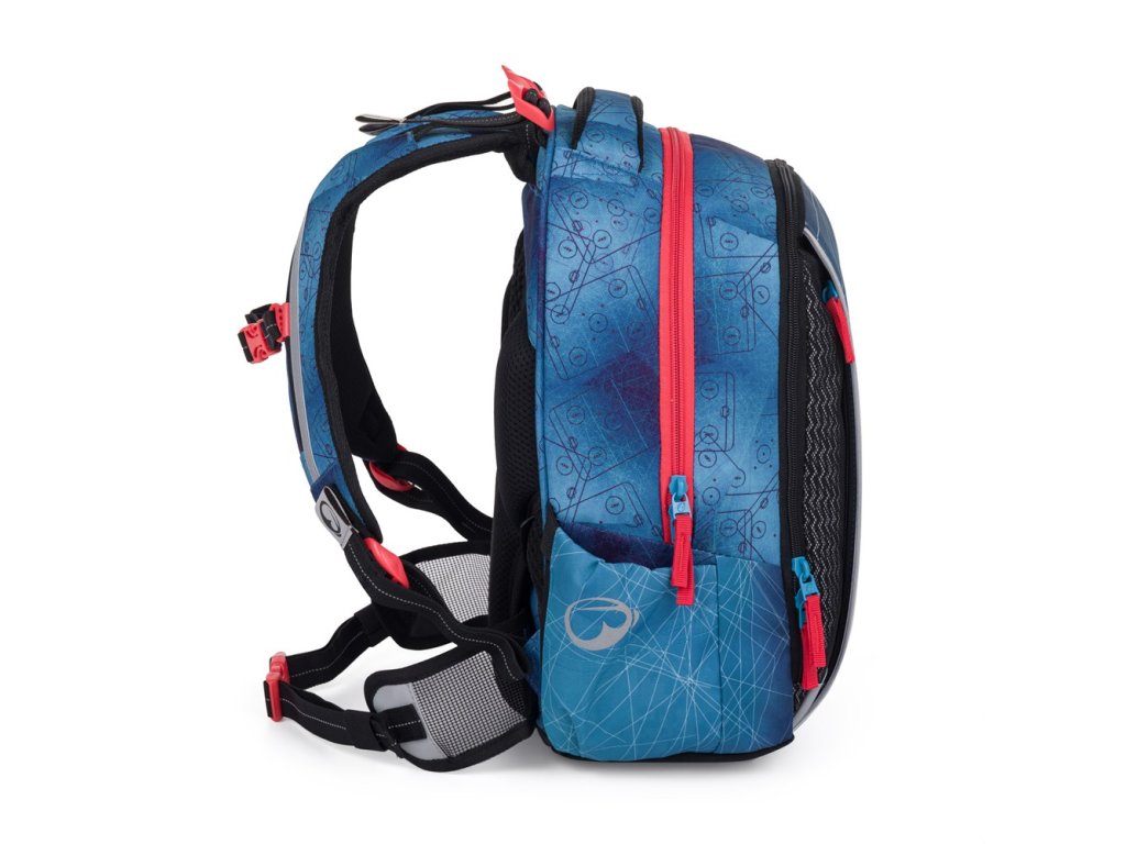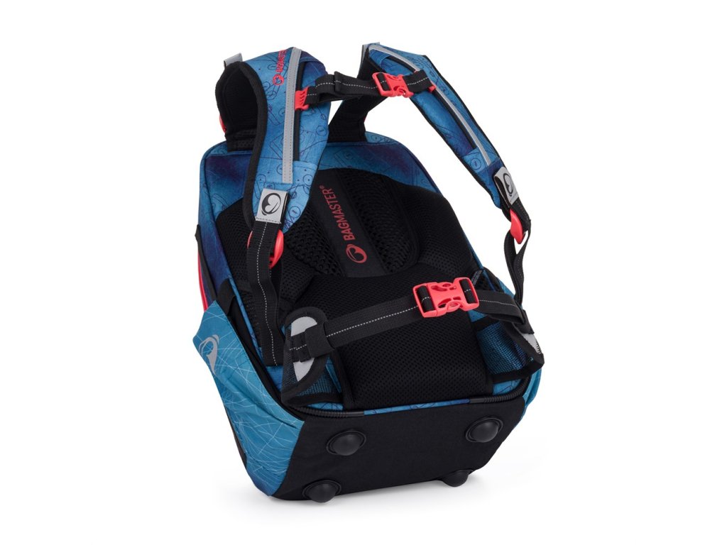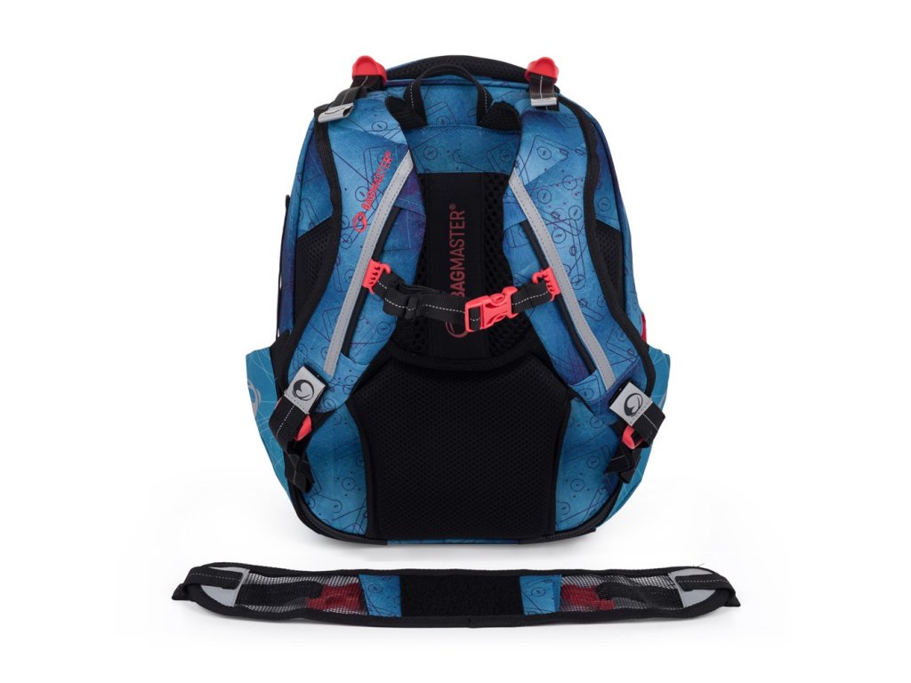 - Ramenní popruhy i zádový systém jsou měkce polstrované. Popruhy se nastavují pomocí horních a dolních plastových spon. Je třeba upravovat délku podle toho, jak školák roste. Konce popruhů jsou magnetické. Aby neblincaly, jednoduše je magnetem připnete nad plastovou sponu.