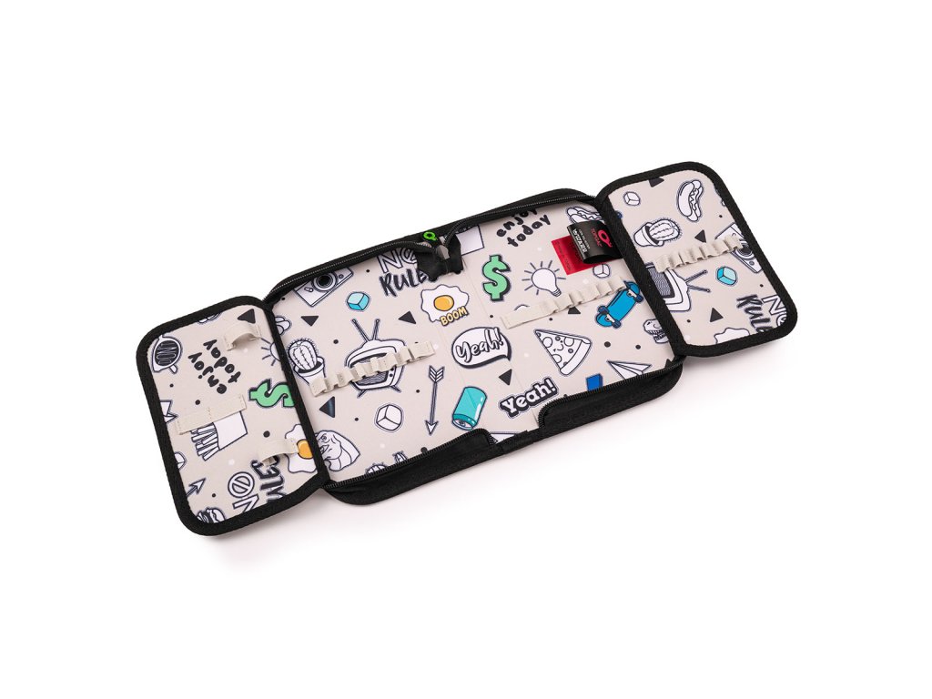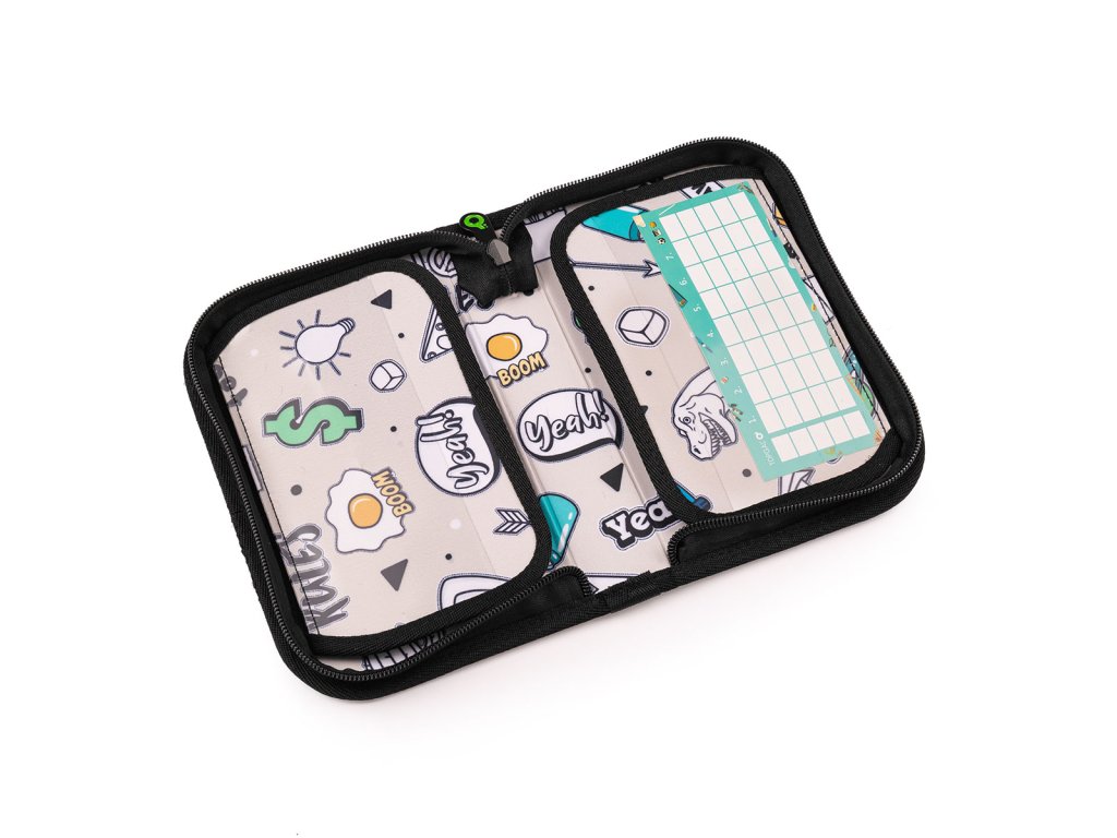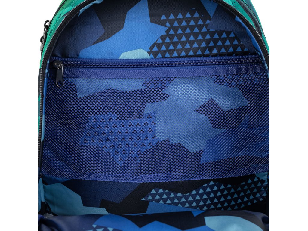 Zadní komora batohu je užší. Je ideální na přenášení nejtěžších učebnic nebo desek na sešity. Přední komora je nejširší a najdete v ní praktickou síťovou kapsičku na zip. Hluboká kapsa mezi přední komorou a kapsou na čele batohu má užší vstup, skvěle se hodí pro penál PENN 23018 ve stejném designu nebo krabičku na svačinku.