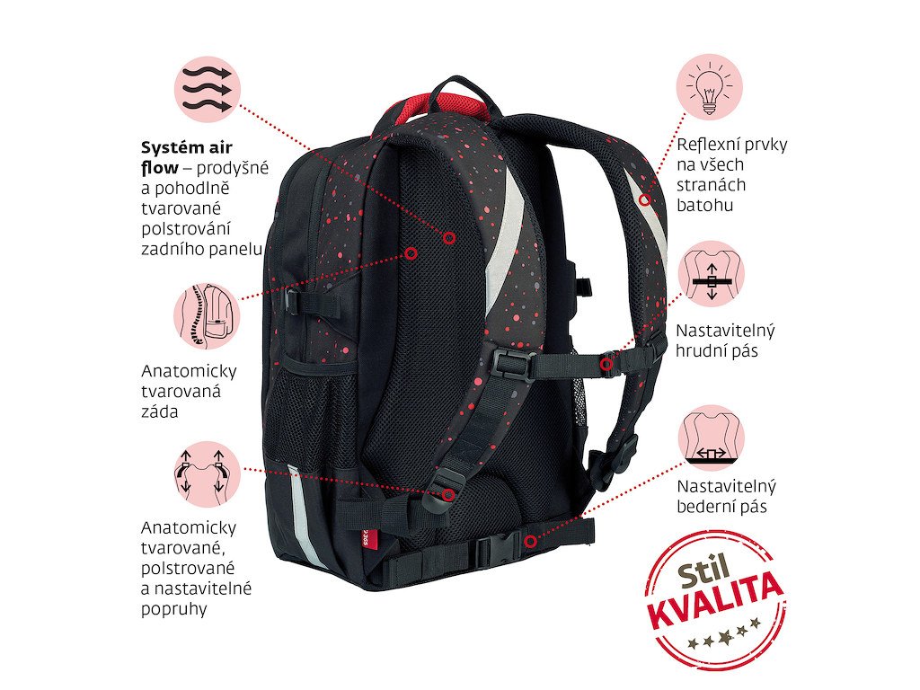 🎒 Batoh je vhodný od 3. třídy ZŠ a skvěle padne dětem s výškou přibližně 130–145 cm.