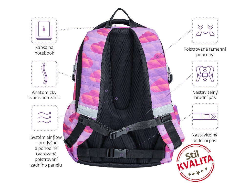 🎀 Školní batoh Stil Midi Heaven je skvělý parťák do školy pro všechny holky, které chtějí kvalitní, pohodlný a prostorný batoh.