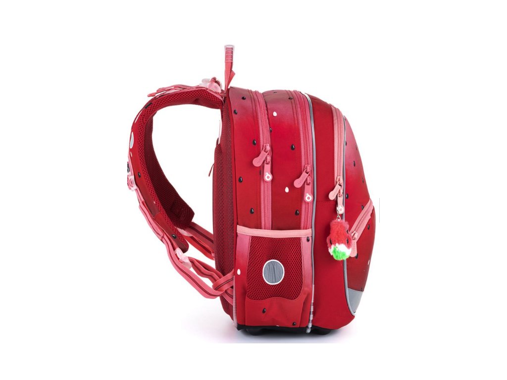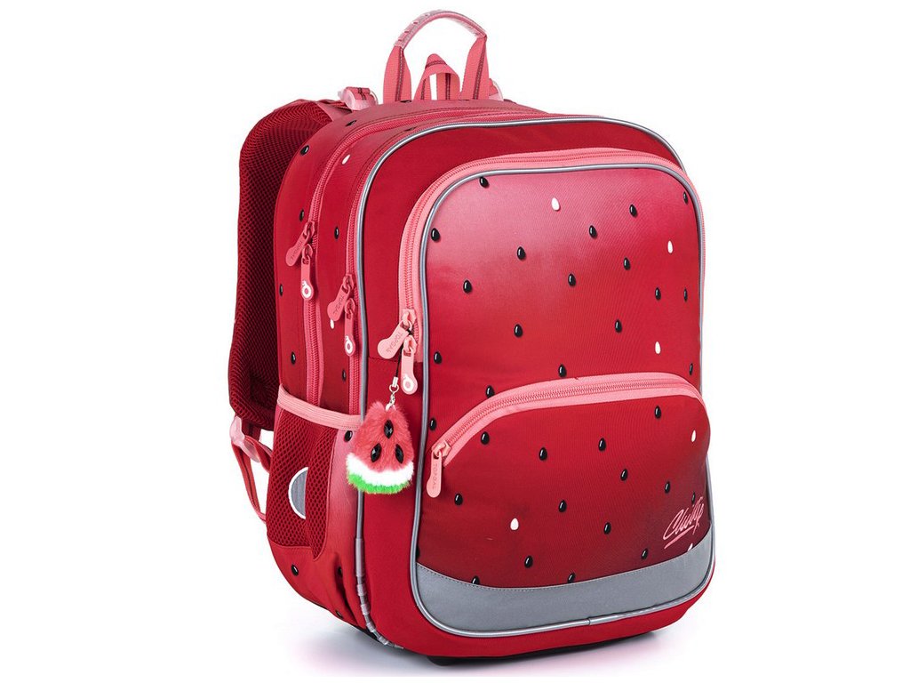 Úplná novinka! Nový lehký dvoukomorový batoh s dvěma předními kapsami je díky své lehké váze ideální pro malé drobné školáčky na prvním stupni ZŠ. Navíc v čučavé červené barvě designu vodního melounu s chlupatým přívěskem. Líbí?