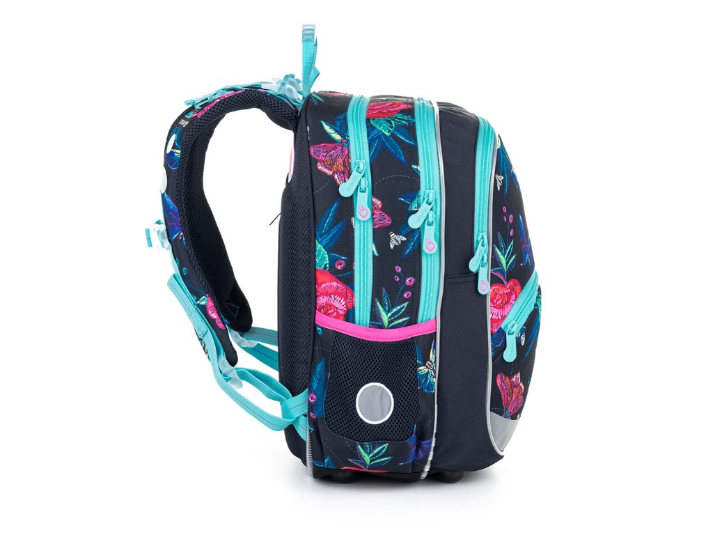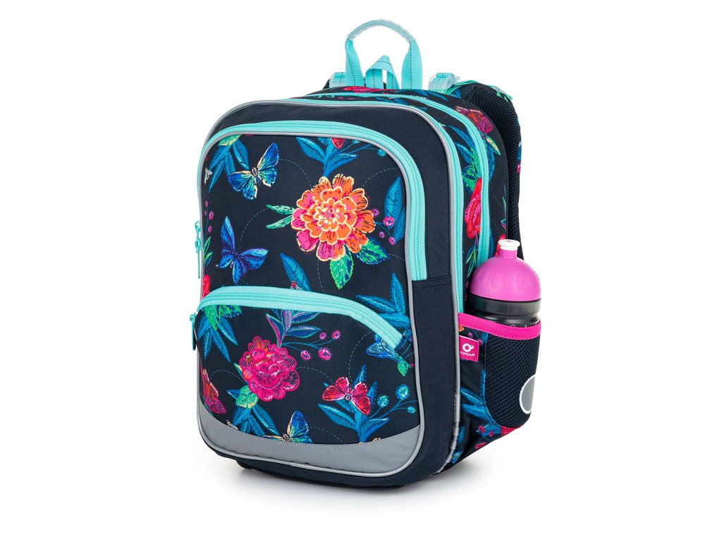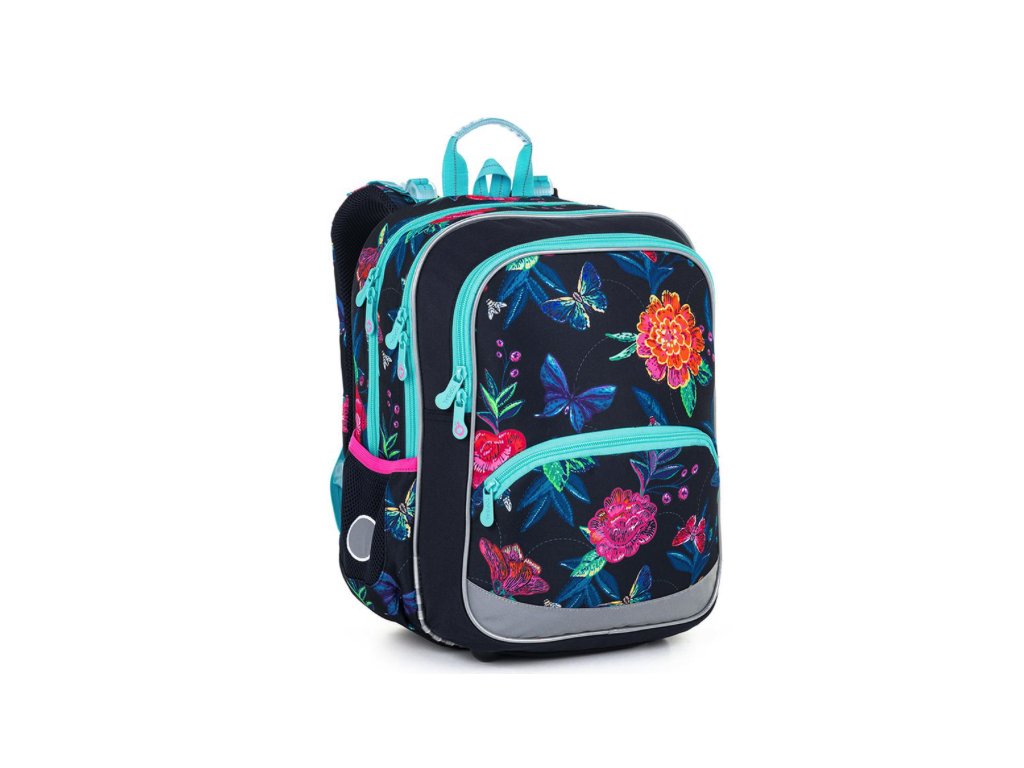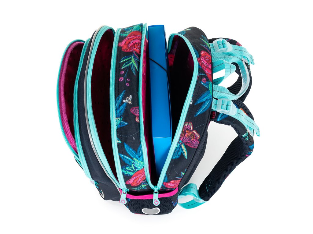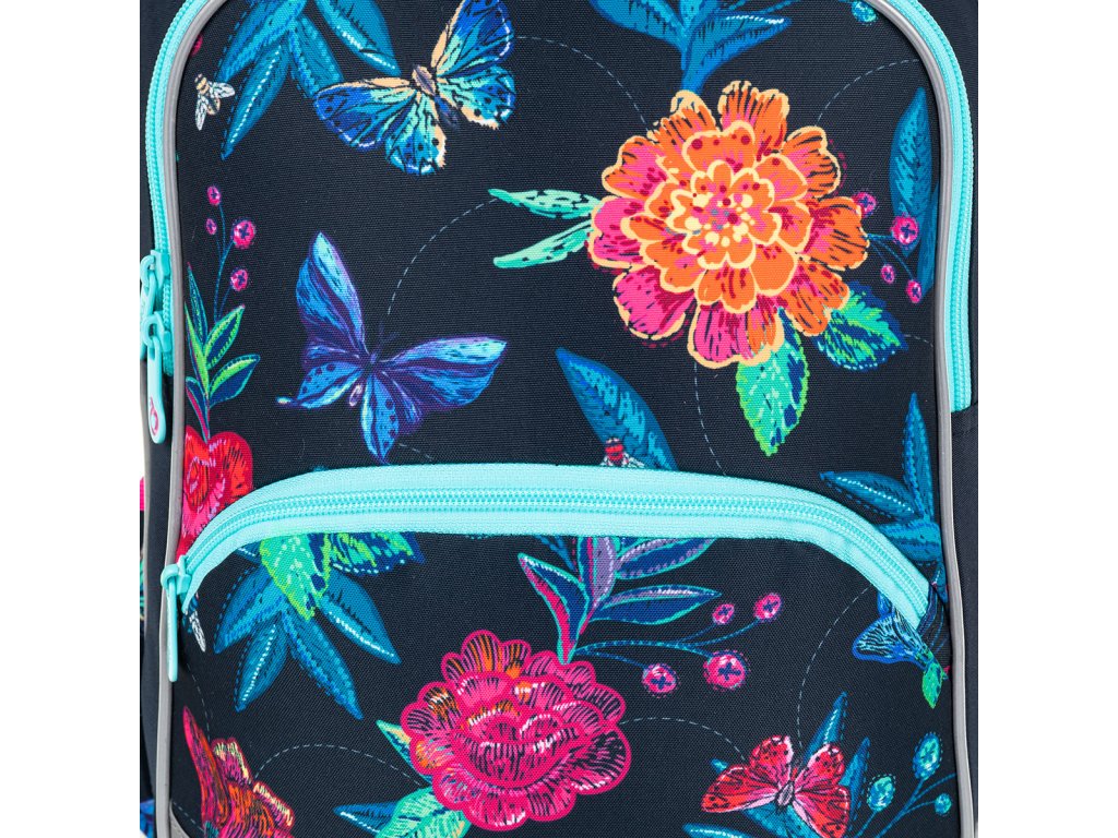 Střih BAZI je nový batoh, který jsme na trh uvedli v roce 2021 a osvědčil se! Proto jsme jej letos ozdobili motýllky a květinami na tmavě modrém pozadí. Lehký dvoukomorový batoh BAZI bude dobře sedět všem dívkám v prvních třídách ZŠ. Jeho dvě komory a dvě přední kapsy unesou všechno učení nejméně prvních tří tříd ZŠ. Líbí?