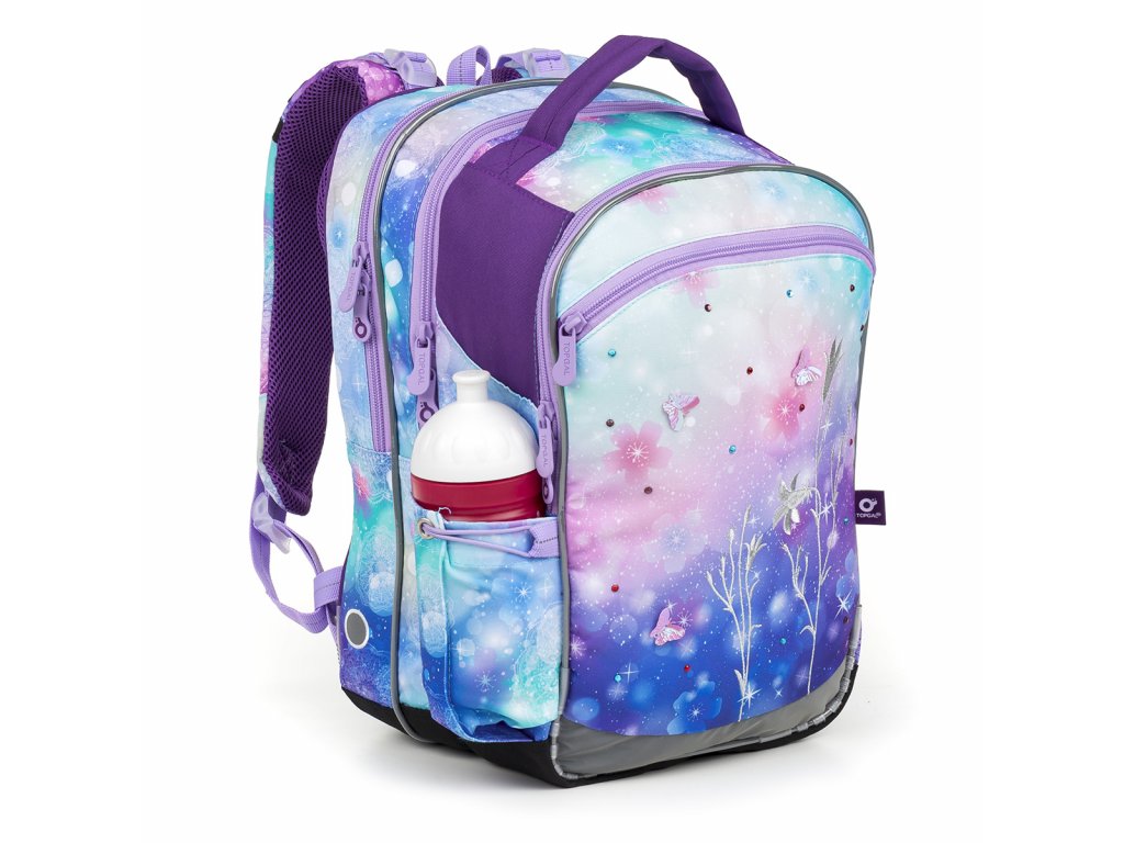 Náš nejuniverzálnější střih batohu jsme oblékli do modrých a fialových odstínů a doplnili stříbrnou výšivkou, motýlky a třpytkami. Tak co, líbí? Všem malým princeznám určitě ano! Oblíbený střih ocení drobné dívky v první třídě, ale i školačky ve vyšších ročnících prvního stupně ZŠ.