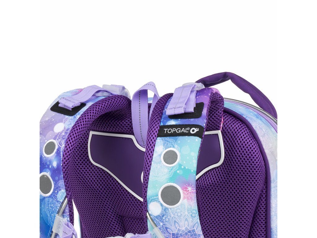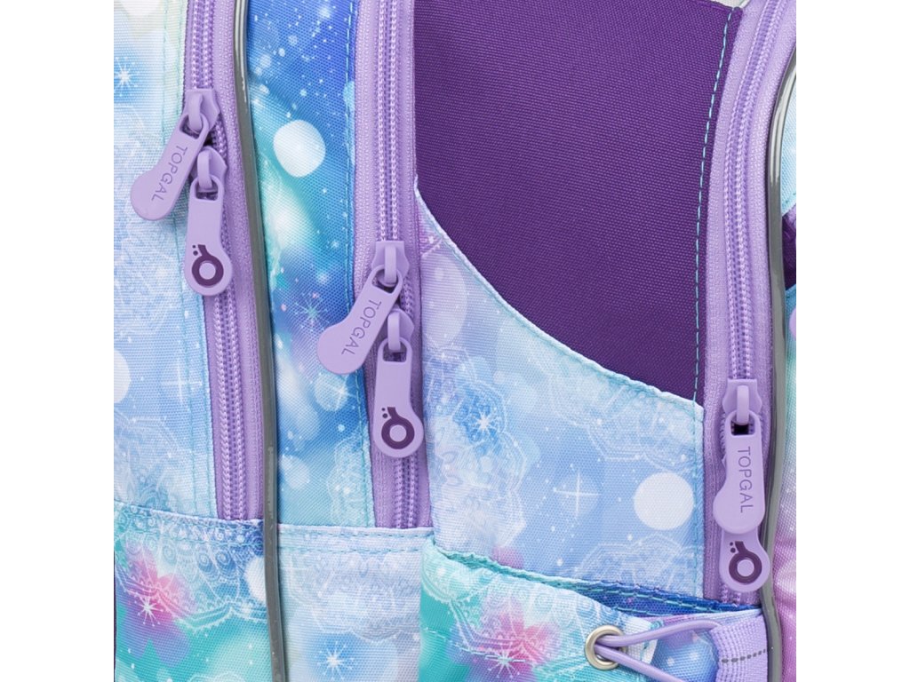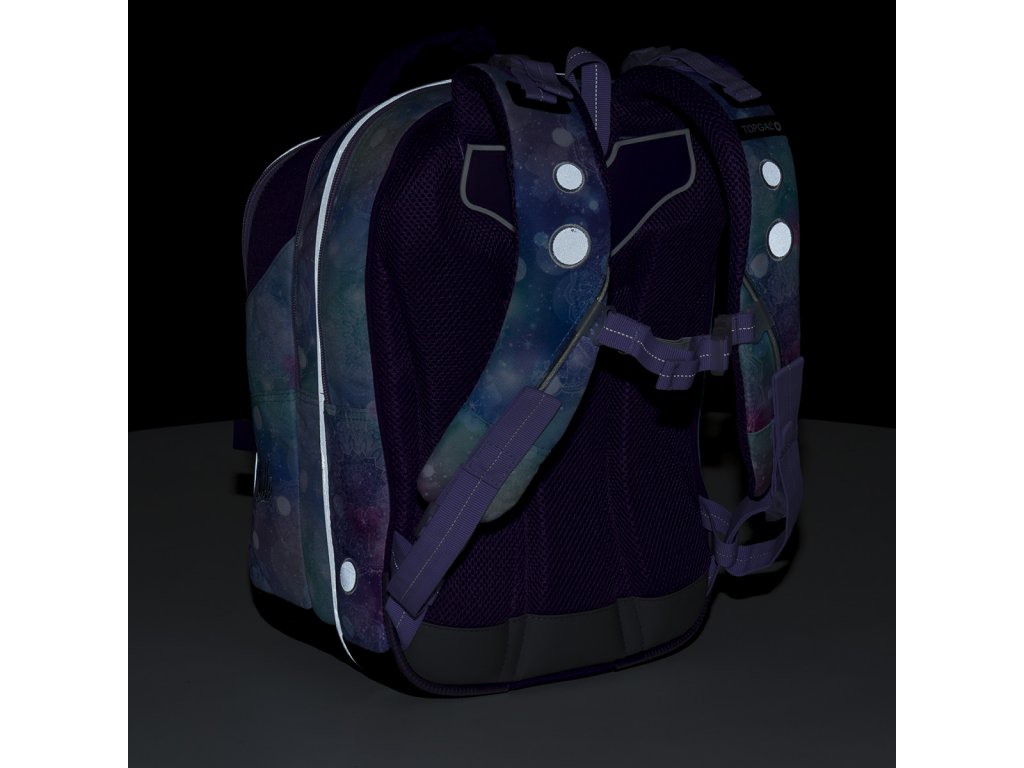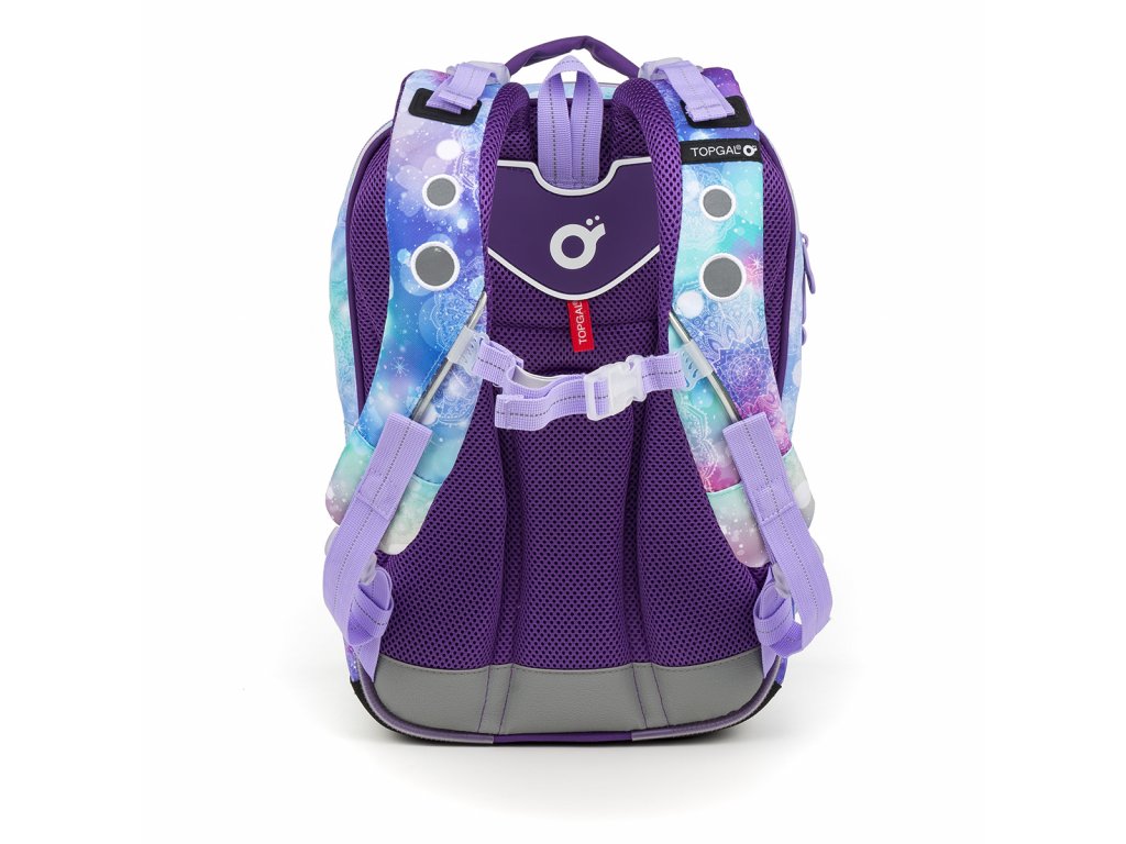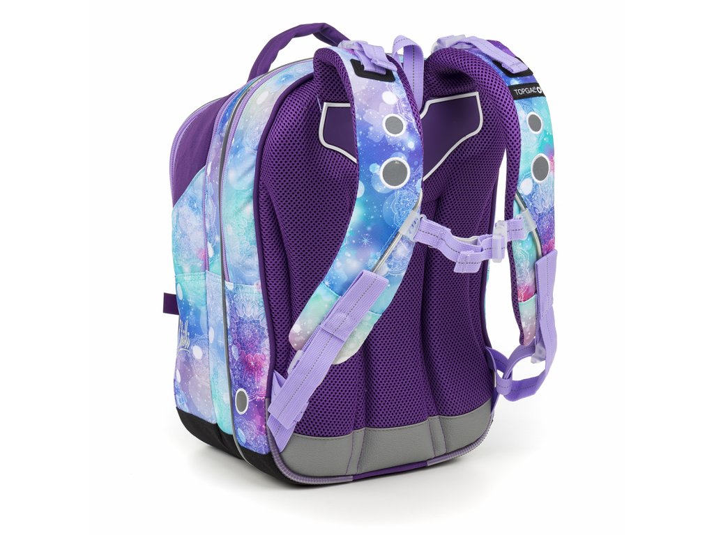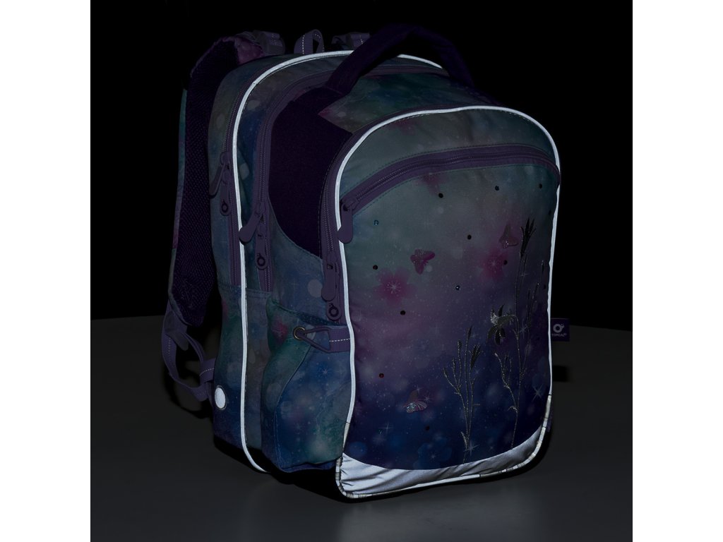 Přední hluboká kapsa je ideální třeba na svačinku, nebo penál PENN 18044 ve stejném designu. Navíc v ní najdete i jmenovku. Lahev na pití umístíte do boční kapsy. Bezpečnost vaší holčičky zajistí plno reflexních prvků na přední části a na bocích batohu i na ramenních popruzích.