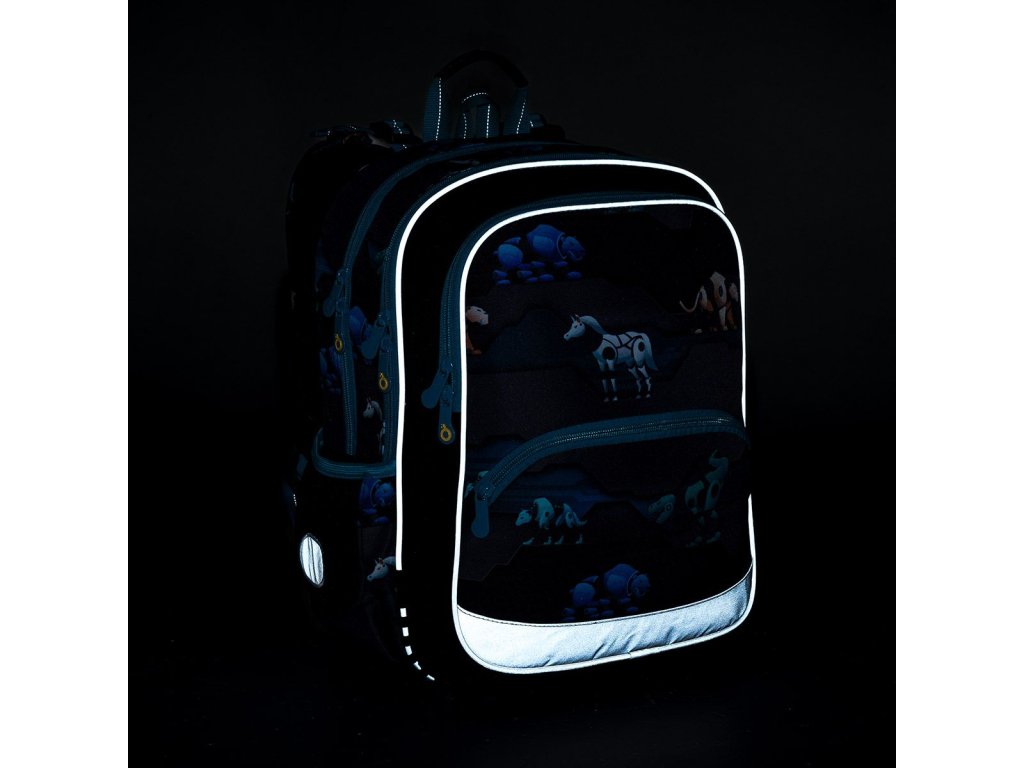 - reflexní prvky: na čele a bocích batohu, na ramenních popruzích