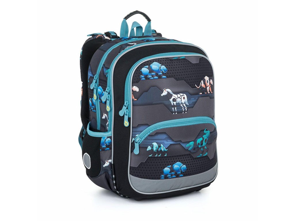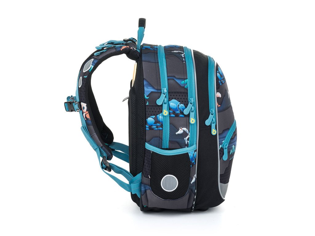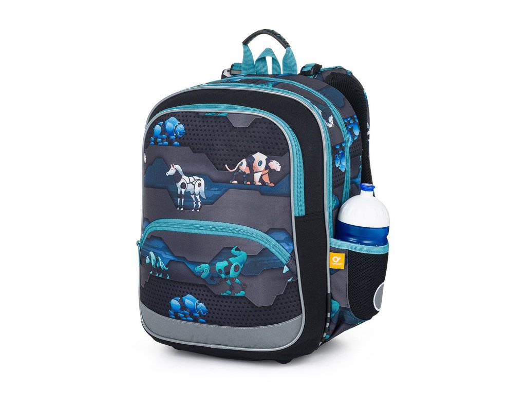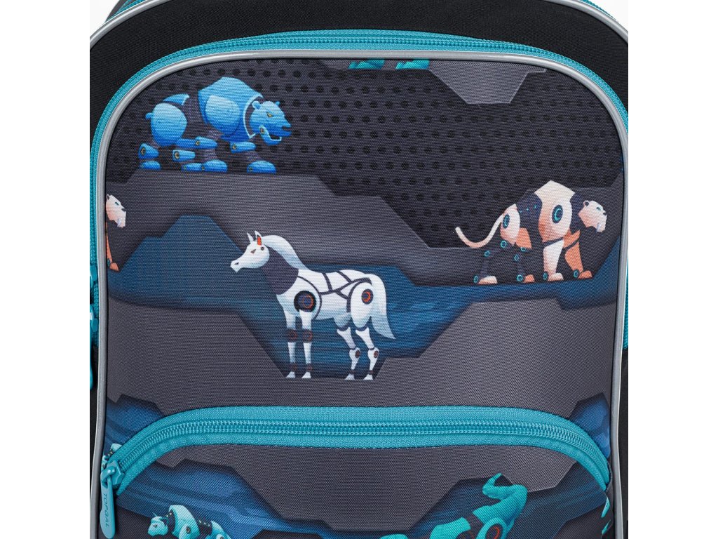 Lehký batoh BAZI je vhodný pro všechny kluky od 115 cm. Zvířecí vzor jsme tentokrát pojali v technickém stylu.