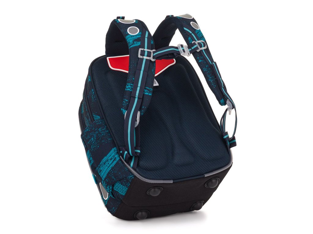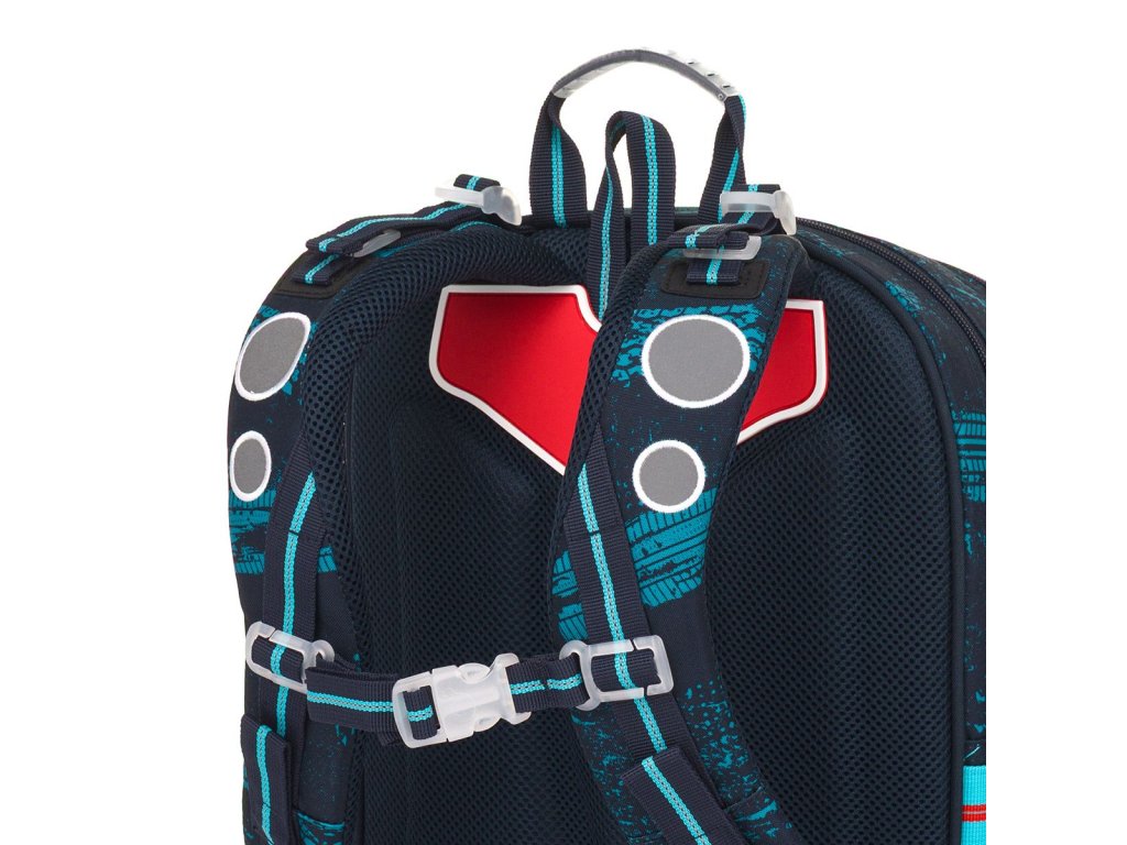 🧠 Pevná lisovaná záda + výškově nastavitelná hrudní přezka – správné usazení na zádech
