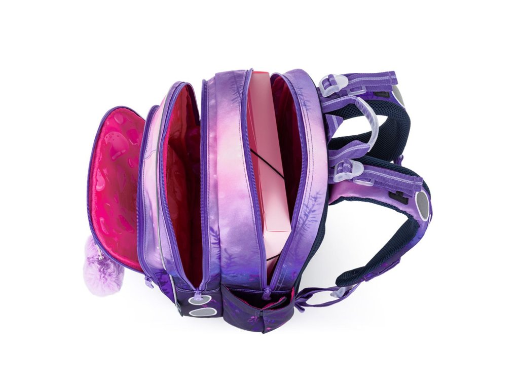 🎀 Hravý motiv fialového králíčka doplněný měkoučkým bambulkovým přívěskem si zamiluje každá malá školačka.