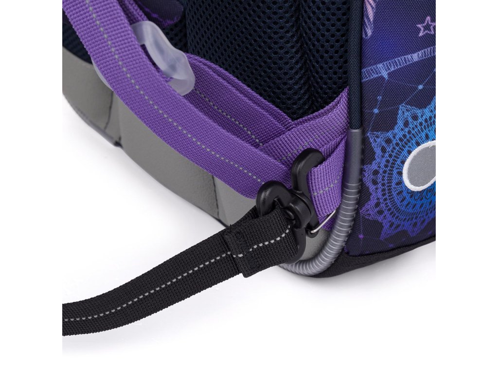 Přední hluboká kapsa je ideální třeba na svačinku, nebo penál PENN 18044 ve stejném designu. Navíc v ní najdete i jmenovku. Lahev na pití umístíte do boční kapsy. Bezpečnost vaší holčičky zajistí plno reflexních prvků na přední části a na bocích batohu i na ramenních popruzích.