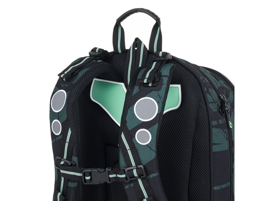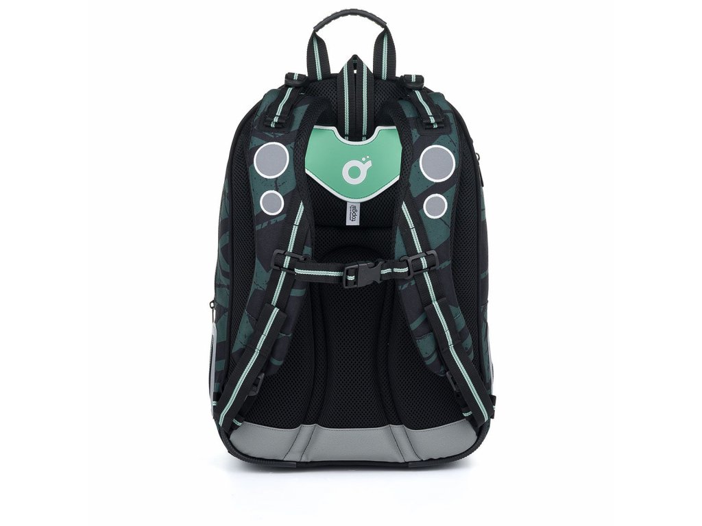 🎓 Batoh má vše, co školák potřebuje – včetně poutka na lavici, karabiny na klíče a možnosti doplnit o bederní pás. A ten styl? Zelená s černou nikdy nevyjde z módy! 🌿🖤