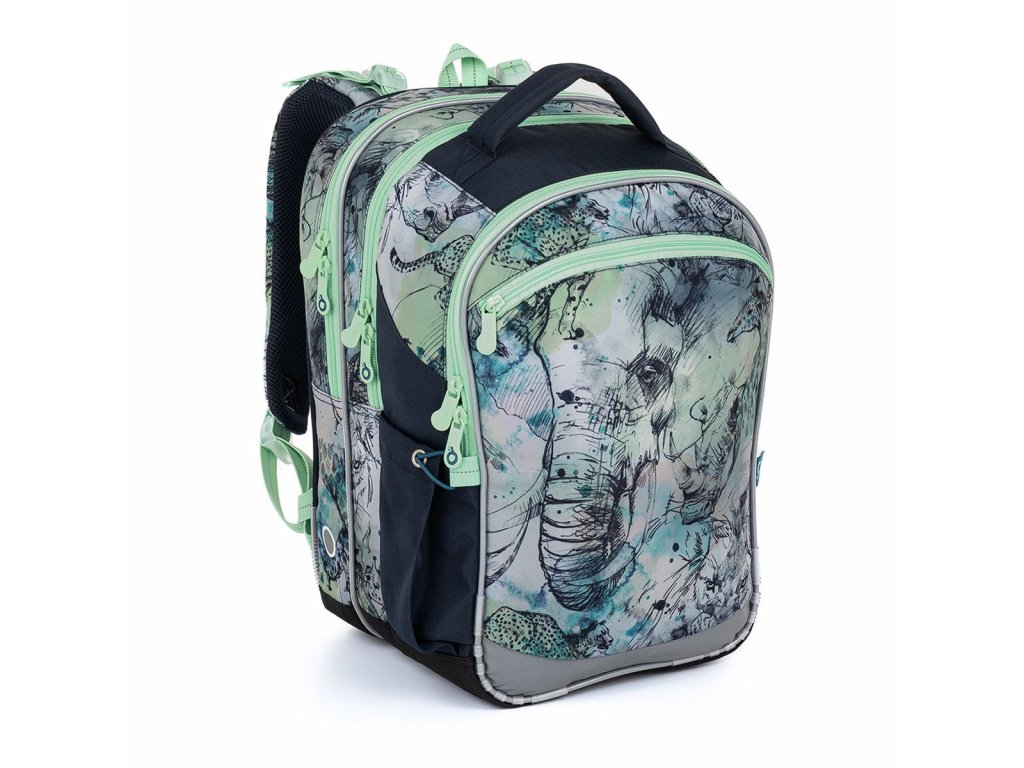 Tříkomorový model COCO je oblíbeným střihem drobných kluků v první třídě, ale i školáků ve vyšších ročnících prvního stupně ZŠ. Dominantou batohu je slon, ale nesmíme zapomenout ani na ostatní zvířata, jako jsou žirafiy, gepard, jaguár i nosorožec. Který milovník zvířat by ho chtěl mít doma?
