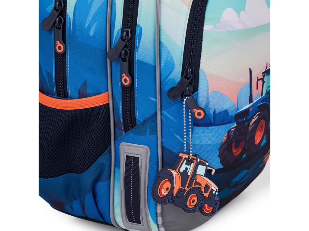 Všichni rodiče jistě ocení lehkou váhu batohu. Váží pouze 0,86 kg, a to hlavně díky lisované lehké zádové části. Školáci si ale nejvíc oblíbí zřejmě design. A co až objeví dva přívěsky na přední kapse!