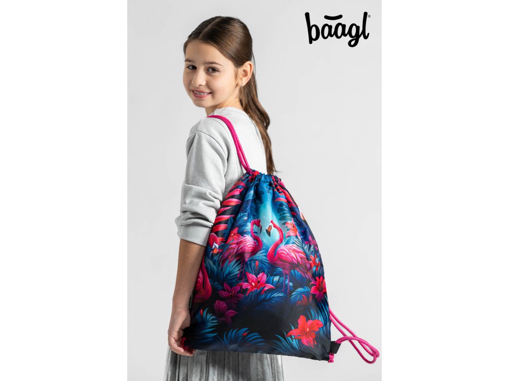 🌸 Baagl Sáček na přezůvky – Plameňáci – Stylový a praktický doplněk pro každou holku! Tento barevný sáček s motivem roztomilých plameňáků je ideální pro každodenní použití do školy, na tělocvik, kroužky či výlety. 🎒