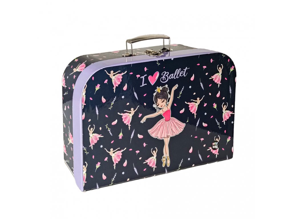 Lamino kufřík na výtvarnou výchovu. Do kufříku se vejde formát A4. Materiál: papír, lepenka, kovový zámeček, kovové nýty.