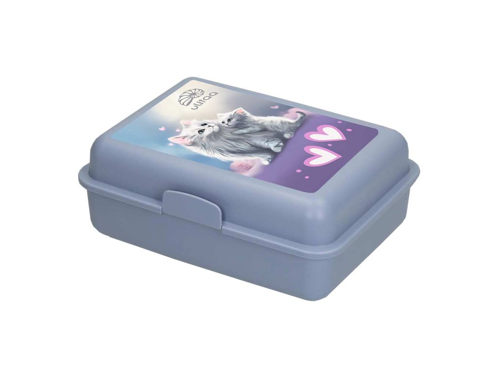 Dívčí svačinový box s kočkami Ulitaa je skvělou volbou pro všechny milovnice roztomilých kočiček. Box je bezpečný pro přímý kontakt s potravinami a ideální do školy, školky i na výlety. Praktický design zahrnuje uzavírání na jeden zámek a dělicí přepážku, kterou lze umístit do dvou poloh podle potřeby. Lze jej mýt v myčce, což usnadňuje údržbu.