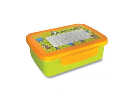 Zdravotně nezávadný box Zdravá sváča v zelené barvě. Vyjímatelná přepážka, průhledka pro obrázek, vhodný do myčky i mikrovlnky.