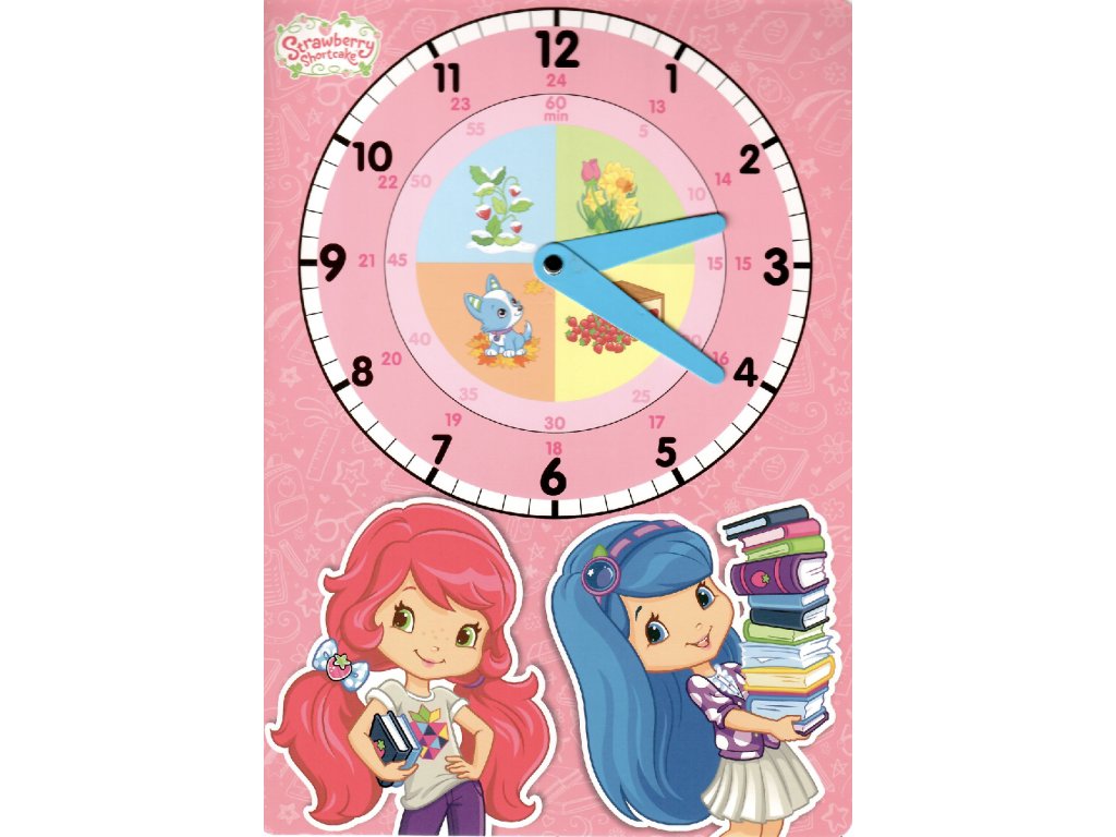 Školní papírové hodiny Akim – Strawberry Shortcake v růžovém provedení a formátu A4 jsou krásnou a praktickou pomůckou pro první seznámení dětí s časem ⏰🍓