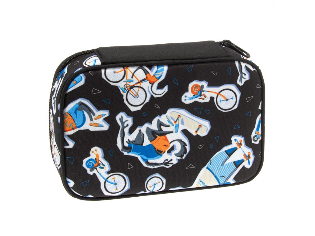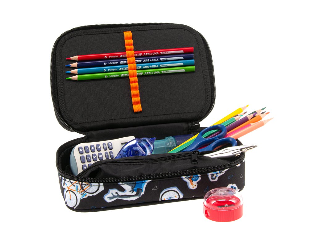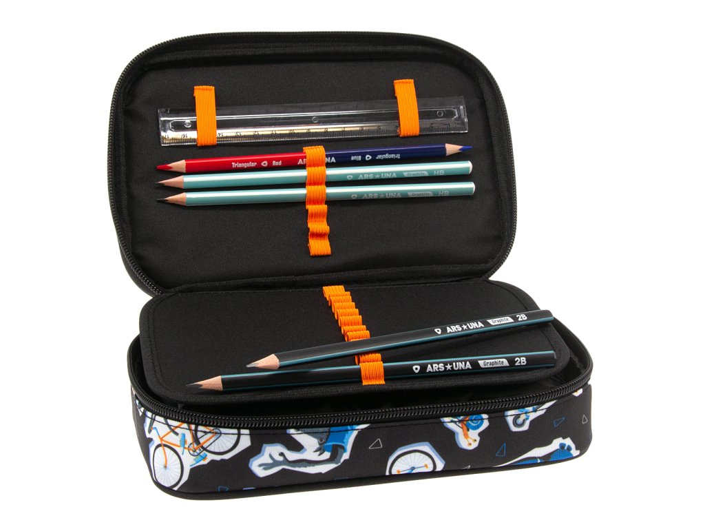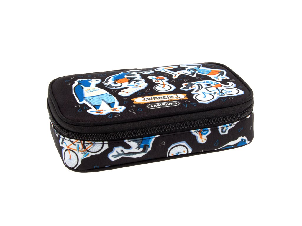 Prostorný školní penál z kolekce Wheelz od výrobce Ars Una s jednou zipovou kapsou a rozměrným úložným prostorem uvnitř. Pouzdro se uzavírá pomocí zipu s kovovým poutkem pro lepší manipulaci.
