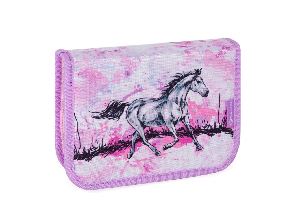 Tento dvouchlopňový penál s jemným motivem koníků v pastelových barvách je ideální pro malé školačky. Uvnitř se nachází 39 pružných gumových úchytů, které pevně drží pastelky, fixy, pravítko, nůžky nebo gumu. Dvě chlopně zajistí perfektní přehled o všech pomůckách.