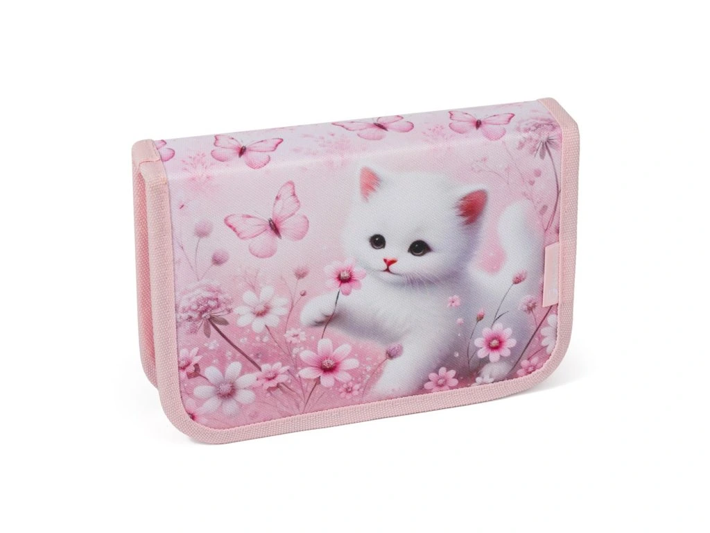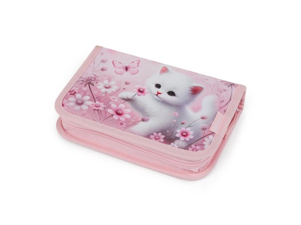 Školní penál Bagmaster DOPI 26 A s motivem kočičky je ideální volbou pro holky na 1. stupni ZŠ, které milují zvířátka a jemné motivy.