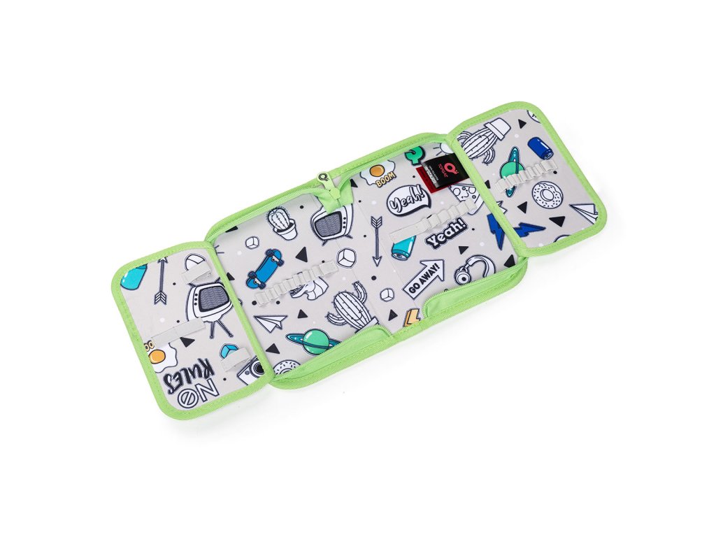 Polstrované tělo penálu spolehlivě chrání psací pomůcky. Zipy s velkými ergonomickými taháčky usnadňují otevírání i malým dětem.