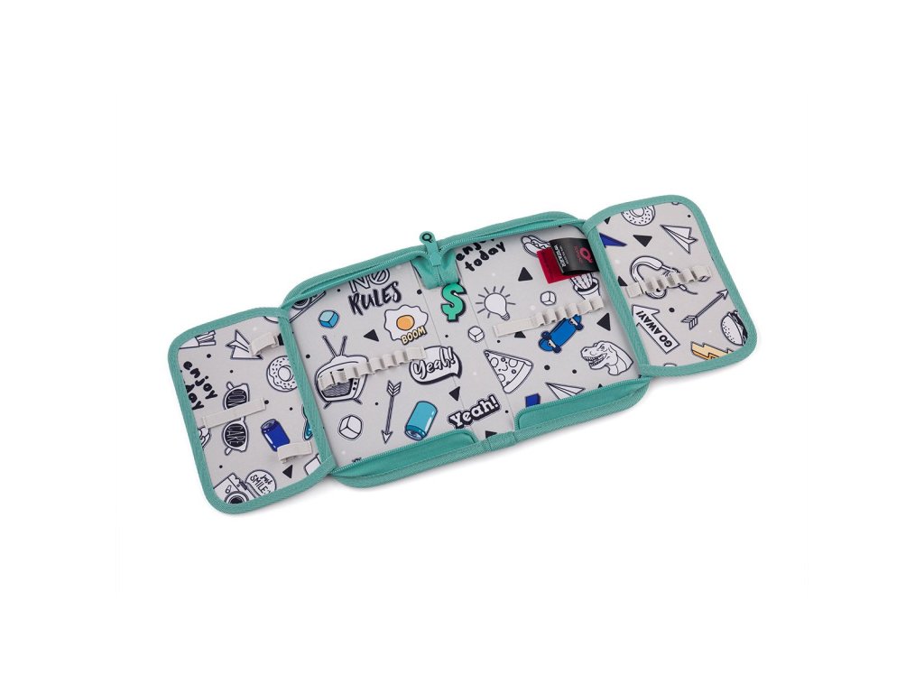Tělo i podšívka penálu jsou pevně polstrované, což spolehlivě chrání psací potřeby. Zipy mají velké ergonomické taháčky, které i menší děti snadno ovládají. Vyrobeno z recyklovaného polyesteru (rPET) s certifikací GRS pro šetrnost k životnímu prostředí.
