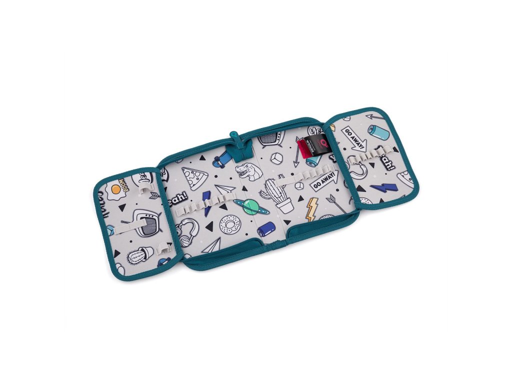 Vnitřní podšívka je potištěná obrázky k vybarvení – podporuje kreativitu školáka. Doporučujeme používat pastelky, protože fixy by se mohly rozpíjet.