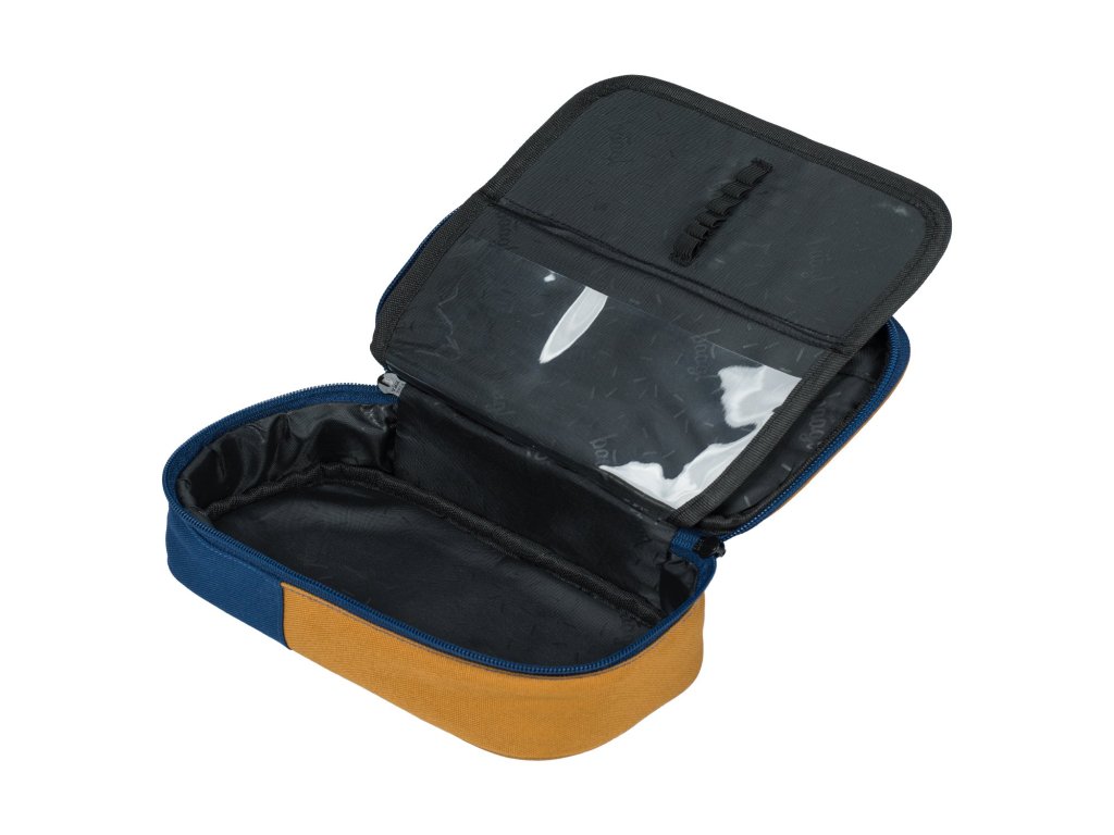 – ✏️ Penál etue Duo: prostorná hlavní komora, dvojitá výklopná chlopeň, vnitřní kapsa a okénko na rozvrh; bez náplně, pevná táhla, zip YKK.