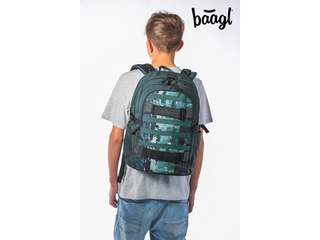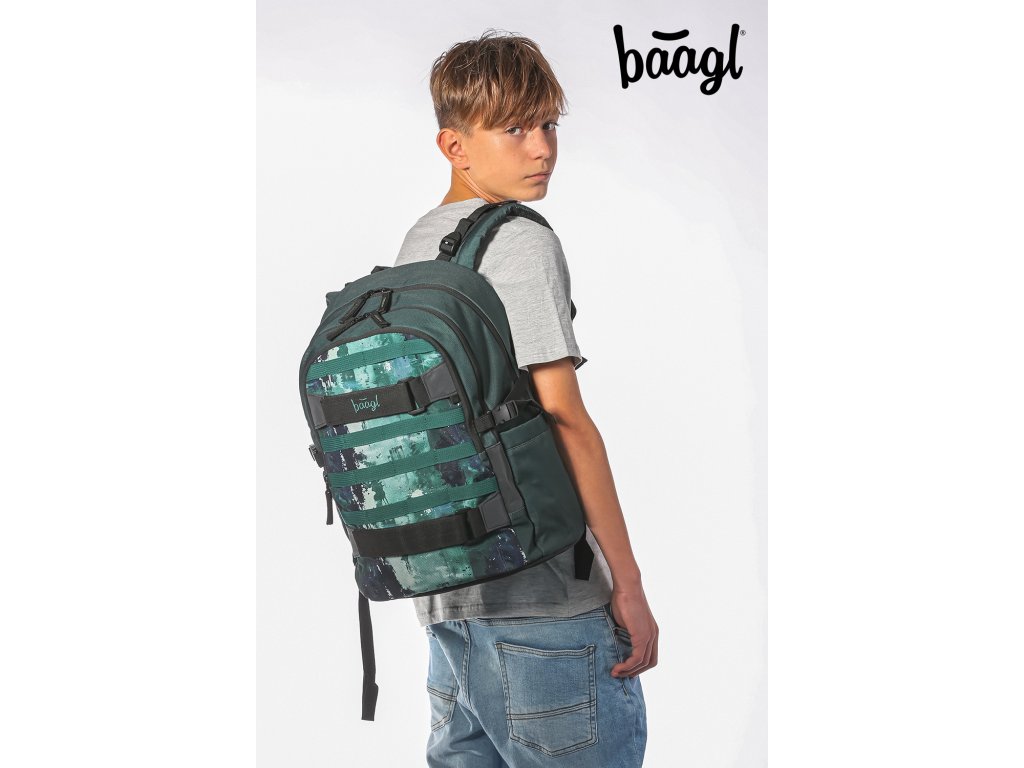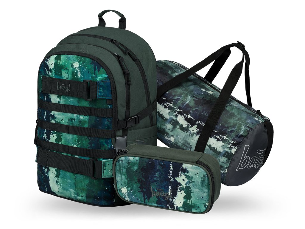 Školní set Baagl Skate Forest – batoh, penál a sportovní taška