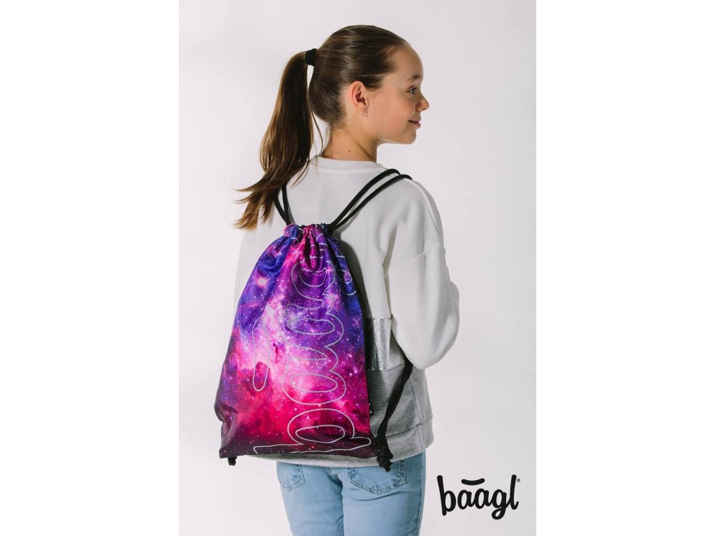 – 👟 Sáček Galaxy: Pevný, omyvatelný materiál, stahovací tkanice pro nošení na zádech.