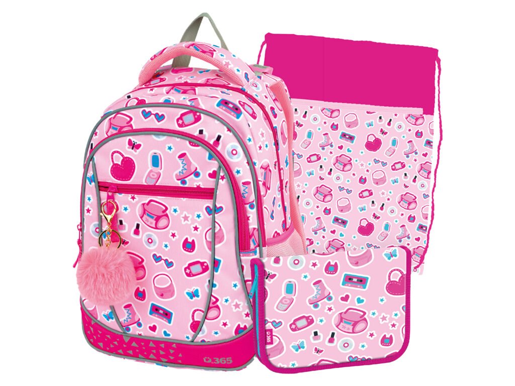 💗 Školní set Stil Prime Pinky je ideální volbou pro holky, které milují jemné barvy, hravý design a pohodlí při každodenním nošení. Růžový styl doplněný roztomilým přívěskem z něj dělá nepřehlédnutelný set do školy.