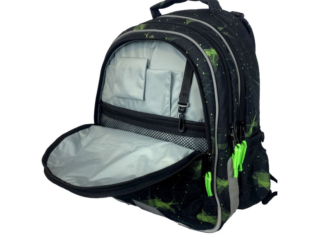 Odlehčený batoh pro 3., 4., a 5. třídu ZŠ s hmotností 1080 g má tři komory a poskytuje dostatek prostoru. Má ergonomicky tvarovanou, měkce polstrovanou zádovou část, která zajišťuje optimální rozložení váhy a proudění vzduchu. Naplněný hezky přiléhá k zádům dítěte.