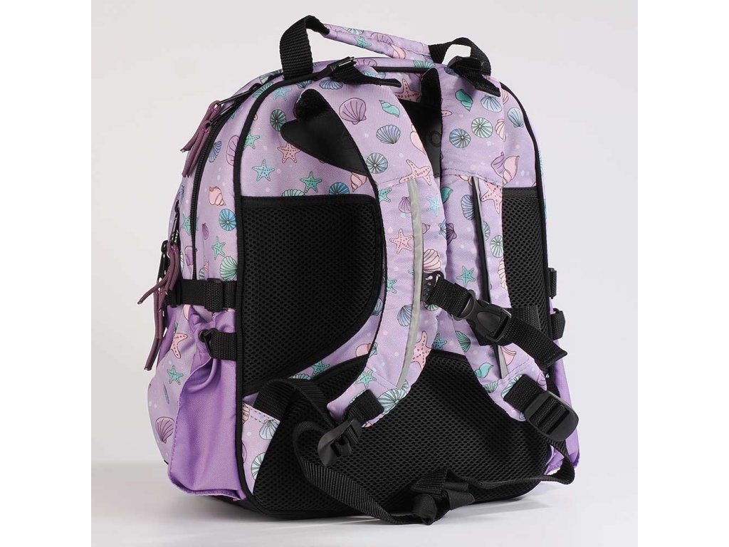 Stylový dívčí vak na záda v jemném motivu Mořská Panna je praktickým doplňkem každé školačky. Má prostornou hlavní kapsu a přední kapsu na zip pro drobnosti, které je třeba mít po ruce. Zavírání je snadné pomocí stahovací šňůrky.