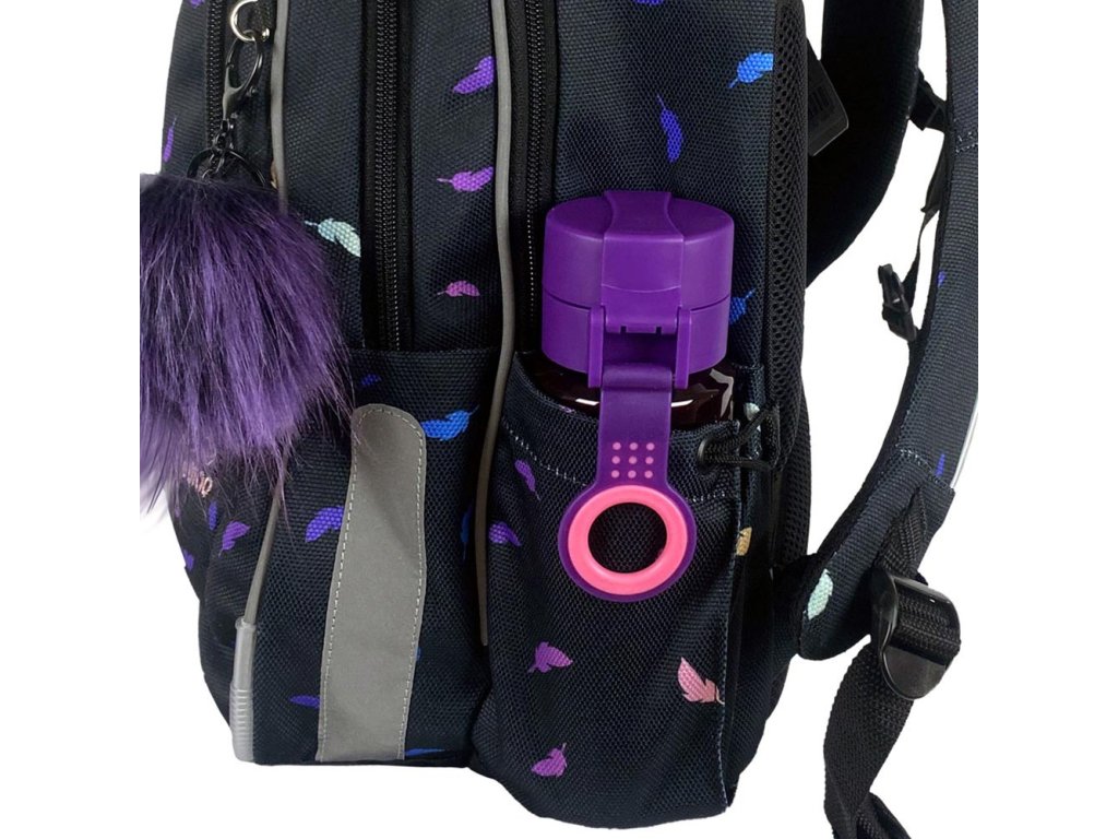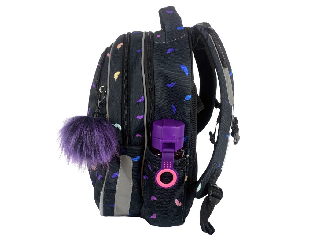 Reflexní prvky pro zvýšení viditelnosti a bezpečnosti najdete ze všech stran - z boku, na přední části i na ramenních popruzích. Velmi důležité jsou právě z bočních stran školní tašky, protože při přecházení silnice vidí řidič chodce právě z boku. Batoh do školy je možné připevnit na háček k lavici pomocí látkového poutka. V horní části je velké ucho k přenášení. Dále má boční poutko pro uchycení navijáku na čip, klíče nebo přívěšek.