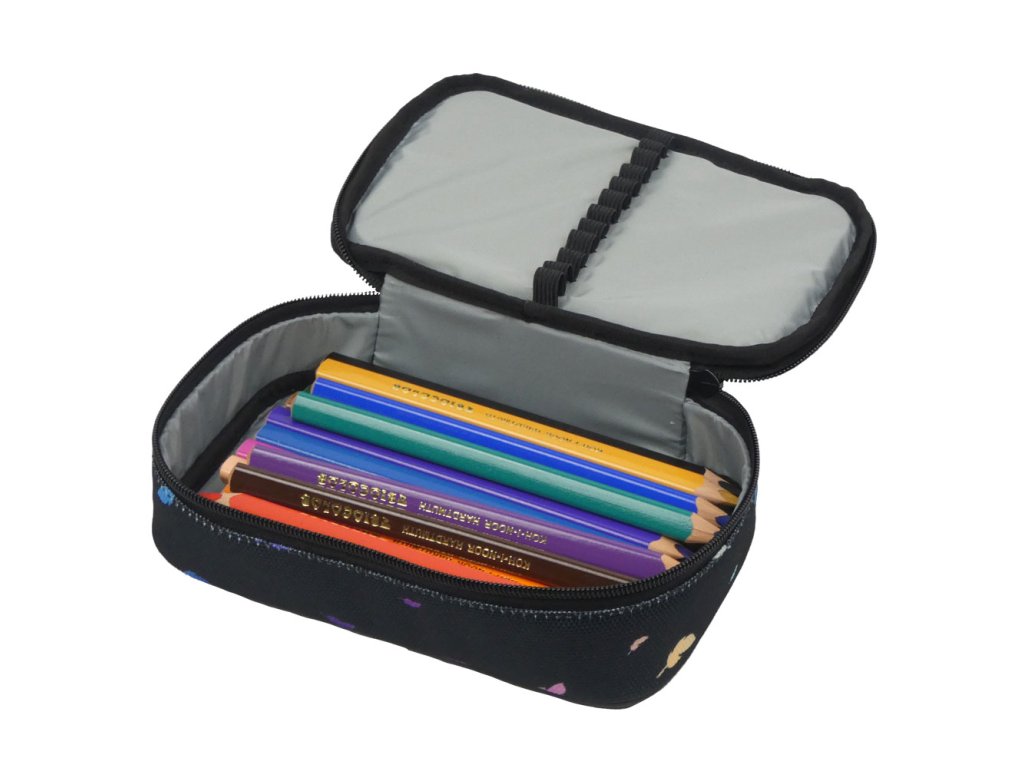 Prostorný penál pro holky české výroby s krásným barevným potiskem. S jednou zipovou kapsou a velkým úložným prostorem uvnitř. Dívčí pouzdro se uzavírá pomocí zipu s kovovým poutkem pro lepší manipulaci.Uvnitř na vnitřní straně víka se nachází 12 gumiček na tužky, pera a pastelky. Do zbylého prostoru se vejdou všechny ostatní školní pomůcky - ořezávátko, pryž, pravítko nebo malá školní kalkulačka.