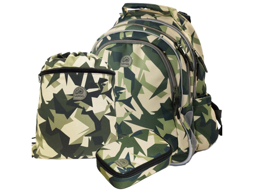 Školní set pro chlapce v Army motivu doporučujeme pro všechny chlapce od 3. do 5. třídy. Set české výroby se skládá ze školního batohu pro 3., 4. a 5. třídu, vaku na záda a pouzdra.